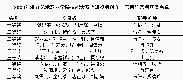 为考察学生的专业知识与职业素养,进一步完善学生专业能力评价体系,提高人才培养质量。5月7日至11日,2023年浙江艺术职业学院技能大赛“融媒体内容策划与制作”与“短视频创作与运营”两大赛项成功举办,来自我院5个专业的60名选手同台竞技。