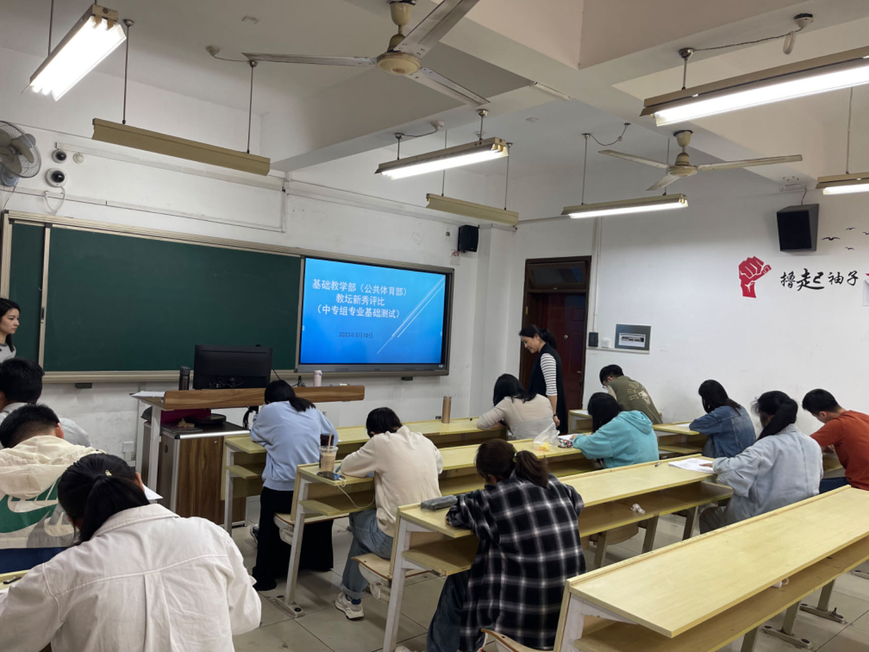 本次“教坛新秀”评比活动为部门首次举办,主要面向35周岁(含)以下的青年教师,旨在加强青年教师的培养,不断提高青年教师的思想政治和专业素质,鼓励优秀青年教师在教育教学岗位上脱颖而出。通过结合《基础教学部(公共体育部)2023年教师课堂教学工作考核评价与绩效激励实施方案》中的教学诊断活动,中专组和高职组还分别设置了专业基础测试和说课环节。参赛教师从不同角度不同层面展示了自己扎实的专业素养、独特的教学风格和饱满的精神风貌。经过激烈角逐,共评选出魏晶晶、厉彦萍、张陈樱子、彭冬生等四位“教坛新秀”,并直接当选2023年学校“课堂教学优秀奖”。