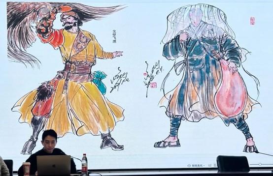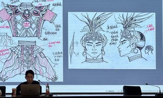 崔晓东介绍了他从事戏剧影视服装设计行业多年来的宝贵心得。在案例分析环节,他向大家分享了舞台剧《平潭映象》,舞剧《诺玛阿美》《尘埃落定》等设计作品,分享了大量的设计手稿、幕后创作过程以及最后作品呈现出来的舞台效果。同时,他结合作品创作历程,讲解了面料再造的具体过程和使用方式,强调了从事戏剧服装行业应该掌握的必备专业基础课程及其重要性,鼓励大家多看、多学、多练。