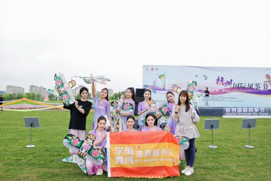 为增强学前教育专业学生校外实践能力,4月29日,学前教育专业艺术进阶(舞蹈方向)师生赴铜鉴湖参与校企合作项目之一的杭州市国际风筝节开幕式舞蹈演出。