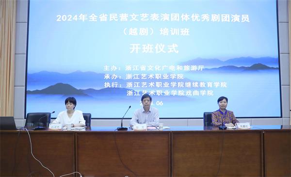 6月27日下午,由浙江省文化广电和旅游厅主办、浙江艺术职业学院承办、浙艺戏曲学院和继续教育学院共同执行承办的全省民营文艺表演团体优秀剧团演员(越剧)培训班(第一、二期)在我校开班,来自全省各地民营文艺表演团体的近200名越剧演员(花旦、小生)参加培训。我校党委委员、副校长徐芳,继续教育学院院长吴灌红、戏曲学院副院长吕灵芝出席开班仪式。开班仪式由吴灌红主持。