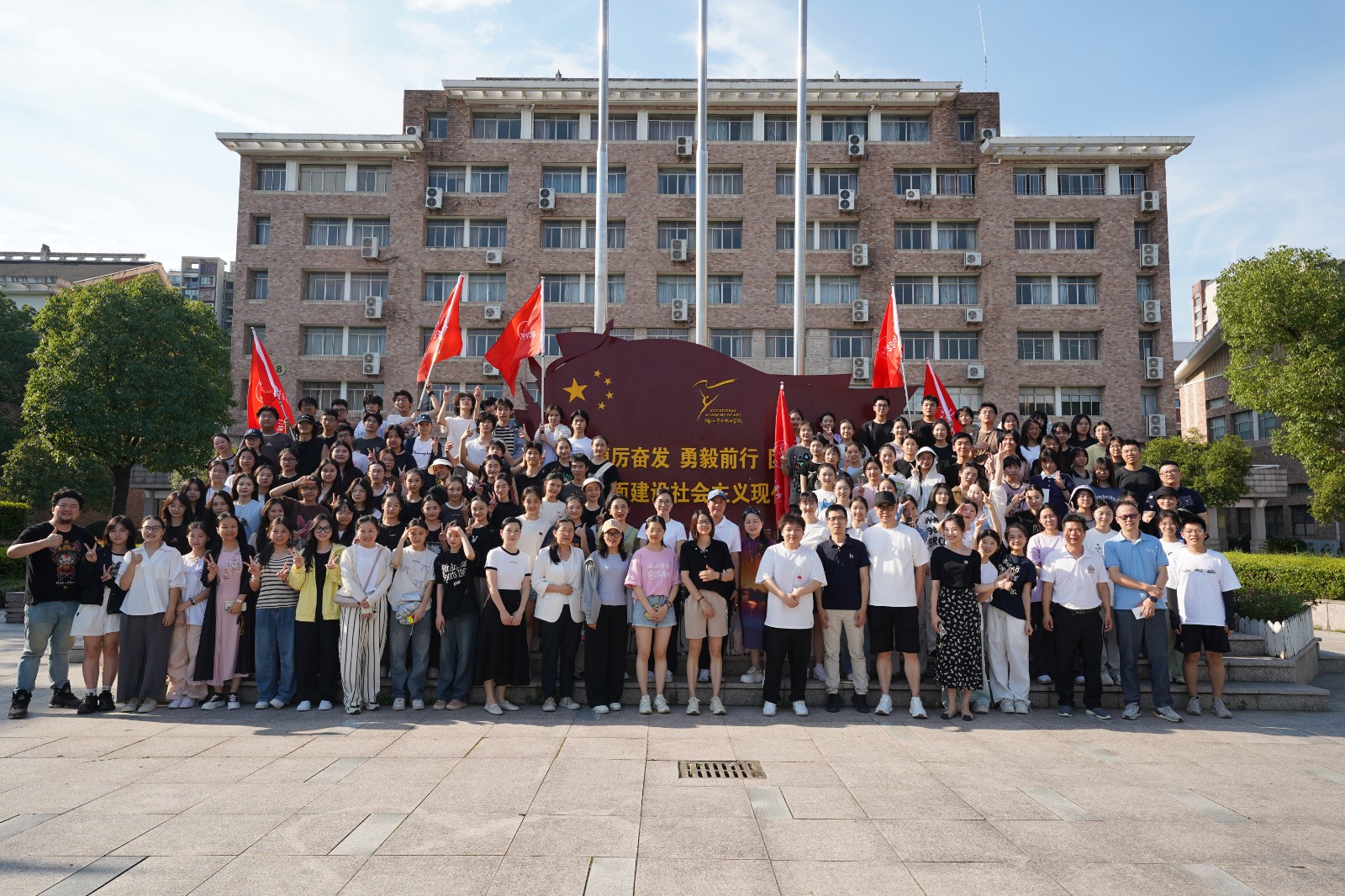 在授旗仪式中,由相关职能部门、二级学院领导为新高三班级授予班旗,各班代表上台接旗。接过鲜艳的旗帜,同学们斗志昂扬的喊出自己的班级誓词,以青春的激情亮剑高考!