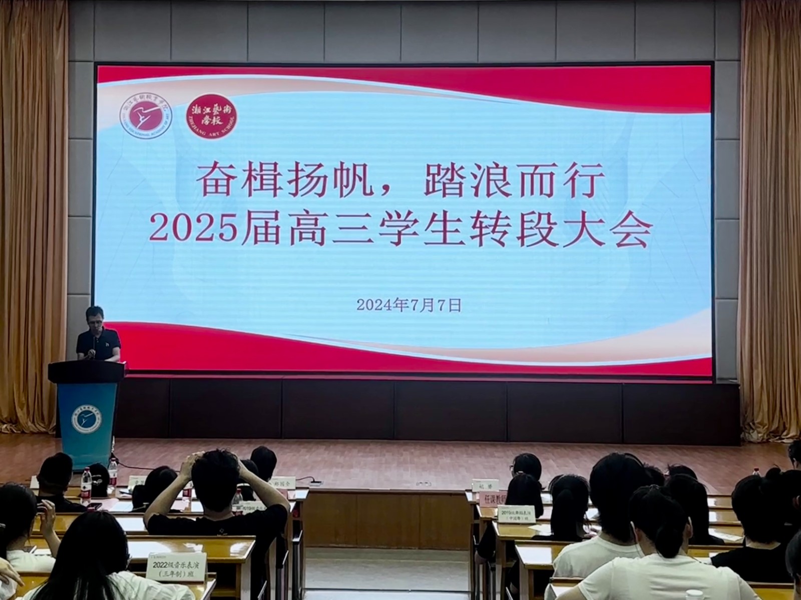 奋楫扬帆,踏浪而行。本次转段大会吹响了2025届向高考冲刺的集结号,这是一场盛大的出征仪式,也是一次梦想的发布会!愿2025届高三学子摒弃心中杂念,擦亮心中梦想,坚定目标全力以赴,勇敢追逐属于自己的“星辰大海”,奋力书写辉煌的明天!
