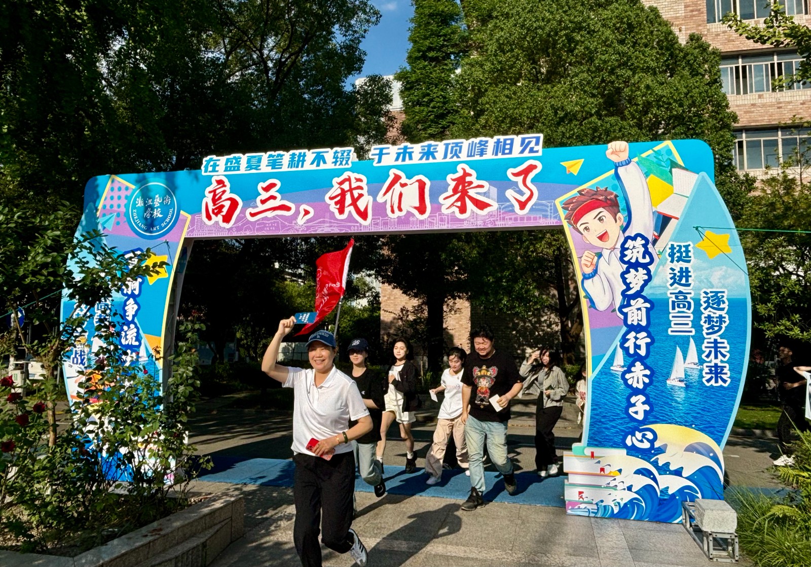 会议结束后,在附中、相关职能部门、二级学院负责人、班主任的带领下,顶着烈日,迈着坚定的步伐,大家共同跑向新高三的大门,随后,同学们也纷纷将“致未来的一封信”投递进邮箱中,将自己的梦想投入到勤学苦练之中。