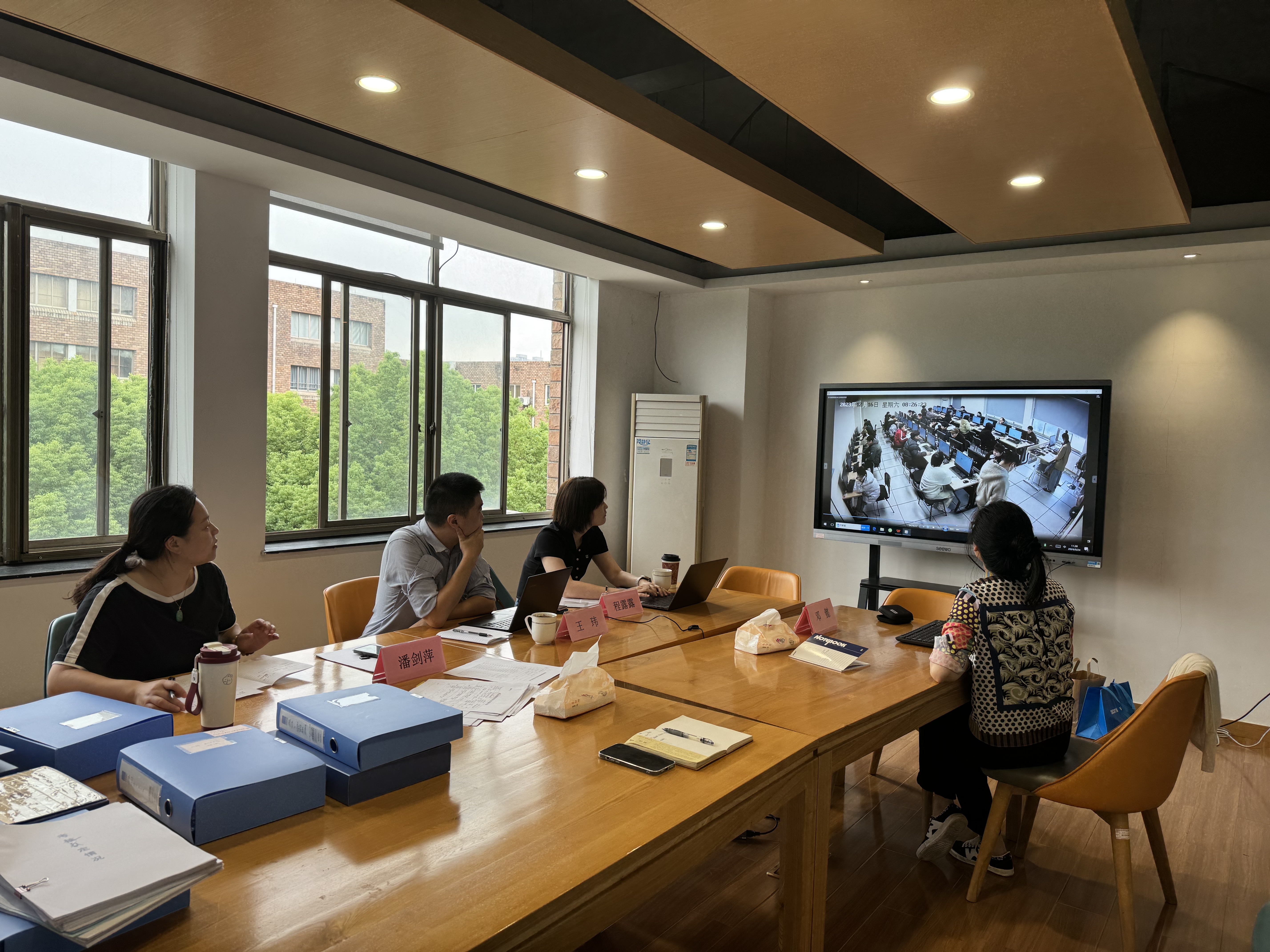 督查组对我校入选省属社会评价组织以来的认定材料和数据进行翻阅,对音响调音员、文物修复师(纸张、书画文物修复)、礼仪主持人三个职业的考试申报流程、考生审核、专家委派、试卷试题抽取、理论与实操现场流程、内部督导配备、证书上网情况、档案保存等进行规范性检查,并现场对2023-2024年度已完成批次的监控影像与其它材料进行细致检查。