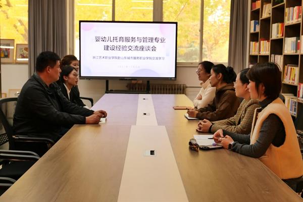 交流会上,张怡对我院学前教育专业教师的来访表示热烈欢迎,并简要介绍了学院的办学理念与发展概况。随后,双方围绕婴幼儿托育服务与管理专业的建设展开了深入交流,就人才培养方案、课程体系构建、学生实习安排及未来就业方向等交换了宝贵的经验与做法。卢茜介绍了浙江艺术职业学院悠久的办学历史与学前教育专业的特色。