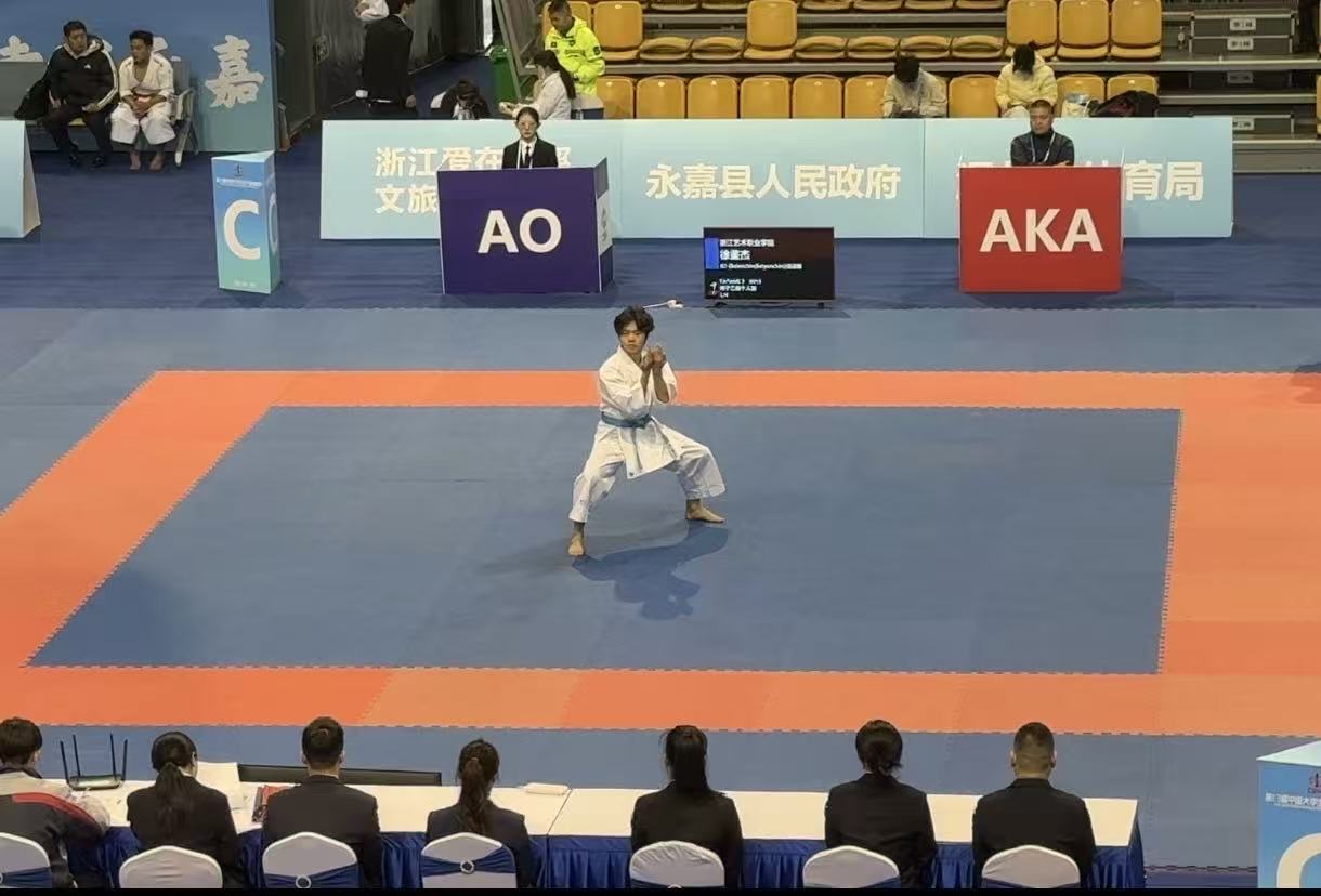 11月24日至28日,第13届中国大学生空手道锦标赛在温州市永嘉县体育馆举办。本次锦标赛作为全国大学生空手道项目的顶级赛事,来自全国78所高校1000余名运动员、教练员参赛。共设置甲组(普通大学生)、乙组(高职高专)、丙A组(运动训练、高水平)、丙B组(体育专业)四个组别,涵盖组手与型两大核心项目,全方位展现当代大学空手道运动的多元发展与深厚底蕴,充分展现了当代大学生空手道运动的高水平发展态势。