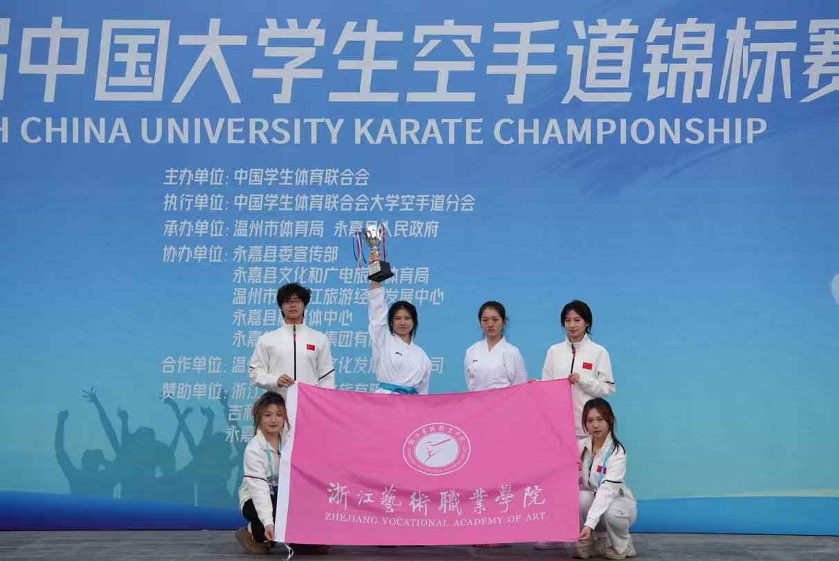 在基础教学部(公共体育部)副主任顾才铭、专任教师王子涵的带领下,演艺与教育学院22歌舞一贯楼玚荣获乙组女子团体型第二名、乙组个人组手-57kg第二名、乙组混合团体组手第五名的成绩;24公共1徐鉴杰获混合双人型第七名的成绩。