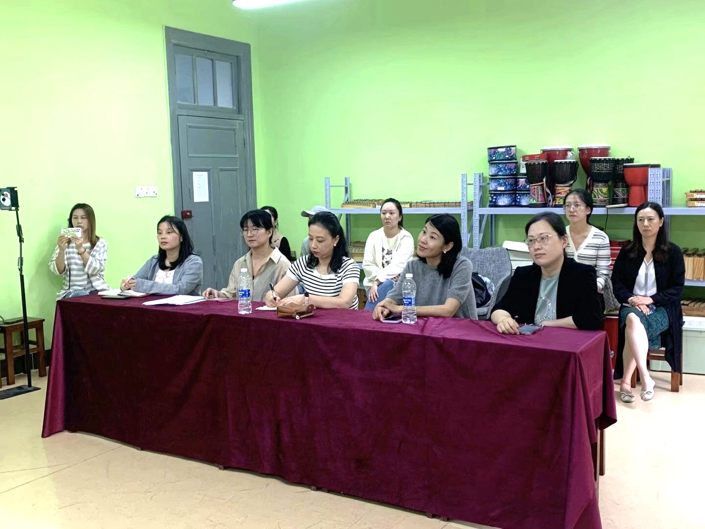 会后,我院教研室团队一行参观了学前教育专业美术、舞蹈、奥尔夫音乐、蒙台梭利教学等实训室,还现场观摩了每周五常规省赛国赛培训课。培训课将大赛各类技能项目都融入教学之中,进行了专门训练。课上学生展示了故事讲述、儿歌表演唱、弹唱和说课等技能。