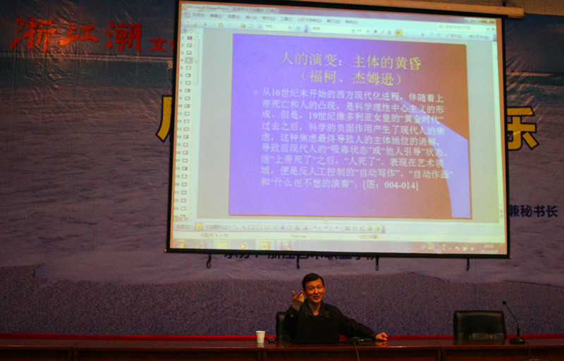 4月25日下午,由浙江省文化厅主办,浙江艺术职业学院承办的第二十五期“浙江潮”文化论坛在图书信息中心举行。学院邀请中央音乐学院教授、博士生导师宋瑾教授为全院师生作题为《后现代主义与音乐》的精彩演讲。