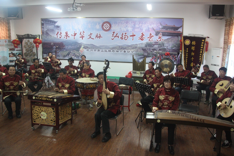 楼塔细十番乐队为浙艺院调研组现场演奏了《望庄台》《一条枪》《八板》等细十番乐曲。