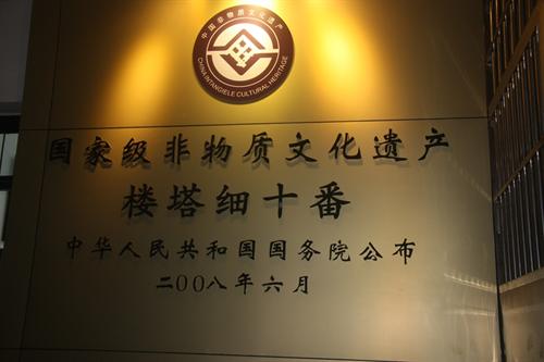 《楼塔细十番》,她是一支民间乐曲,属于十番音乐类的细十番音乐,产生于600多年前的明代。公元1377年,宫廷御医楼英回到故乡楼塔,将明朝宫廷的一套歌颂大禹治水功绩的乐曲带到楼塔,楼英一边问诊著书,一边以琴会友,在家传习细十番的各种古典套曲,细十番就这样产生。