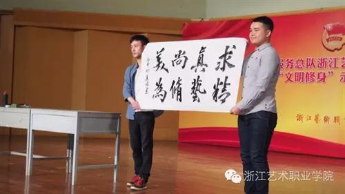 仪式中,院党委副书记黄杭娟讲话。她希望浙艺学子能够志存高远,坚定理想信念;明德修身,锤炼高尚品德;勤于实践,练就过硬本领。同时,黄杭娟也指出,团学工作常做常新,各级团学干部特别是学生党员,要以“文明修身”的标准来要求自己、对照自己,勤于学习,提升修养,做学习的先行者、创新的示范者、正能量的传播者。