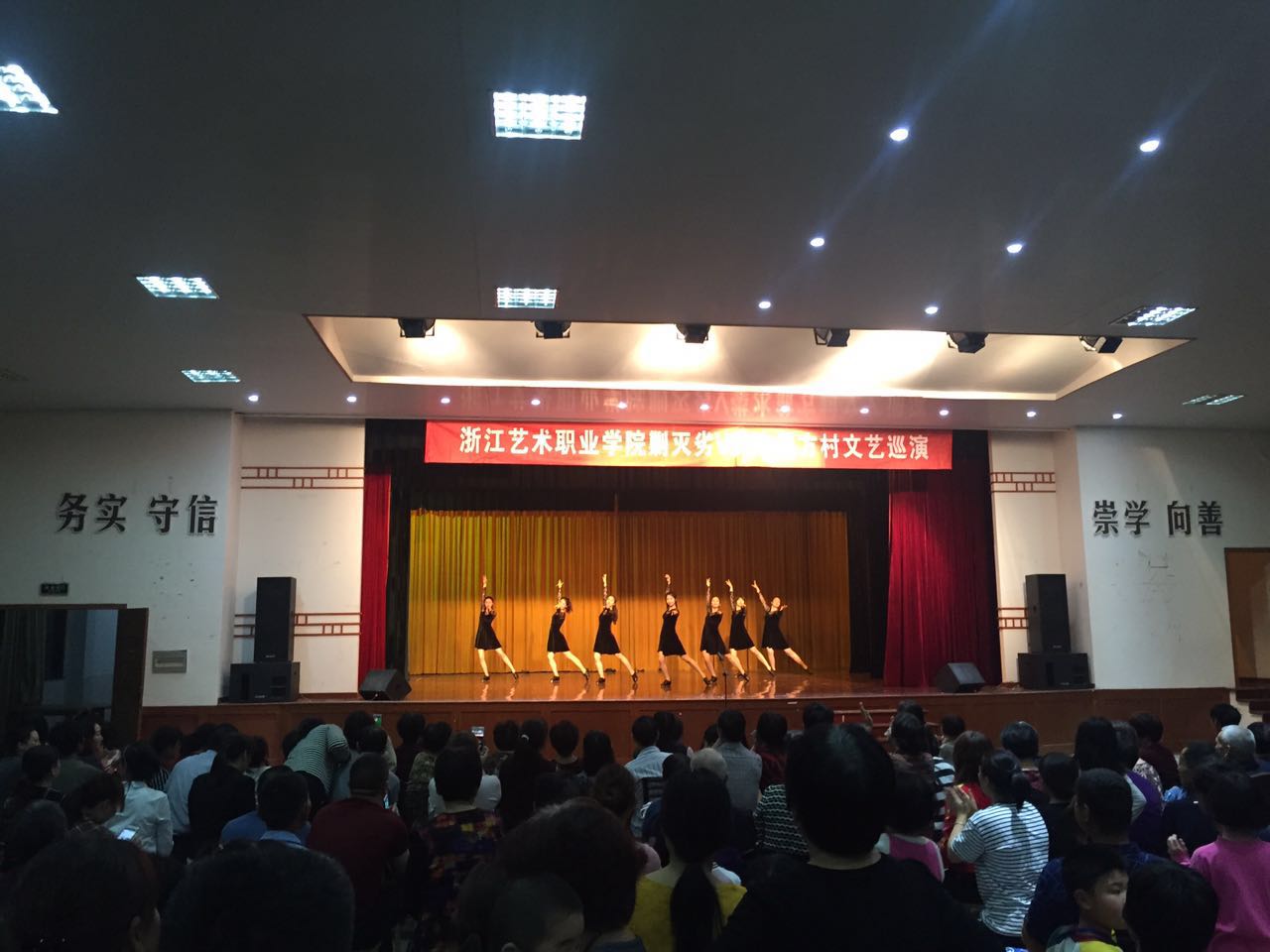 16日晚18:30,“剿灭劣V类水”专题文艺巡演在翁方村文化礼堂准时开始,一支华丽的踢踏舞“格里的旋转”拉开了本场文艺巡演的序幕,接着戏曲、声乐、舞蹈、小品等节目陆续上场,精彩的表演引来村民阵阵掌声,大家乐开了花。歌曲《鹿港小镇》唤起人们对原生态居住环境的回忆,“听说他们挖走了家乡的红砖砌上了水泥墙,家乡的人们得到他们想要的却又失去他们拥有的……”;歌曲《多情的土地》吟唱着美丽的山水,勾起游子对家乡的挚爱,“我轻轻地走过这山路小溪,这山路小溪,捧起黝黑的家乡泥土,仿佛捧起理想和希冀……”。在演出间隙,演员和主持人通过与台下观众互动,进行剿灭劣V类水动员和宣传,起到了良好的效果。期间,在村领导的带领下,演出队伍还参观了翁方村家园馆,了解了河姆渡文化和村史,给浙艺的学生们上了一堂极有意义的历史课。