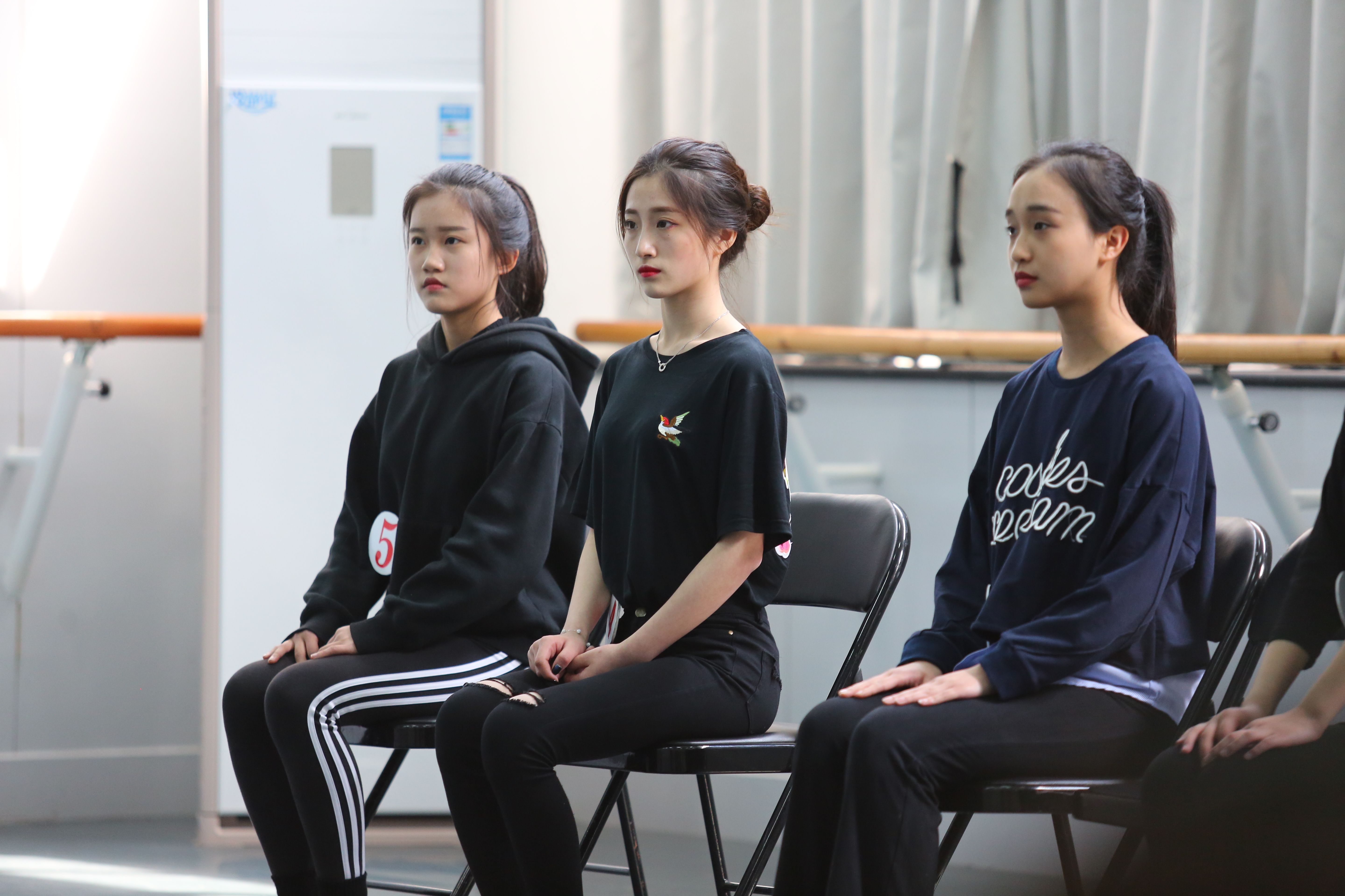 今年考场集中在舞蹈、音乐和文化教学楼,工作人员有条不紊地引导着考生进入一个个专业考场。即使在排队等候期间,考生还在一遍遍回顾已熟透的台词,哼着将要展示的歌曲,在候考教室,考生们甚至开始相互帮助进行各种高难度动作热身,只为了在接下来的考试中取得一个满意的分数。