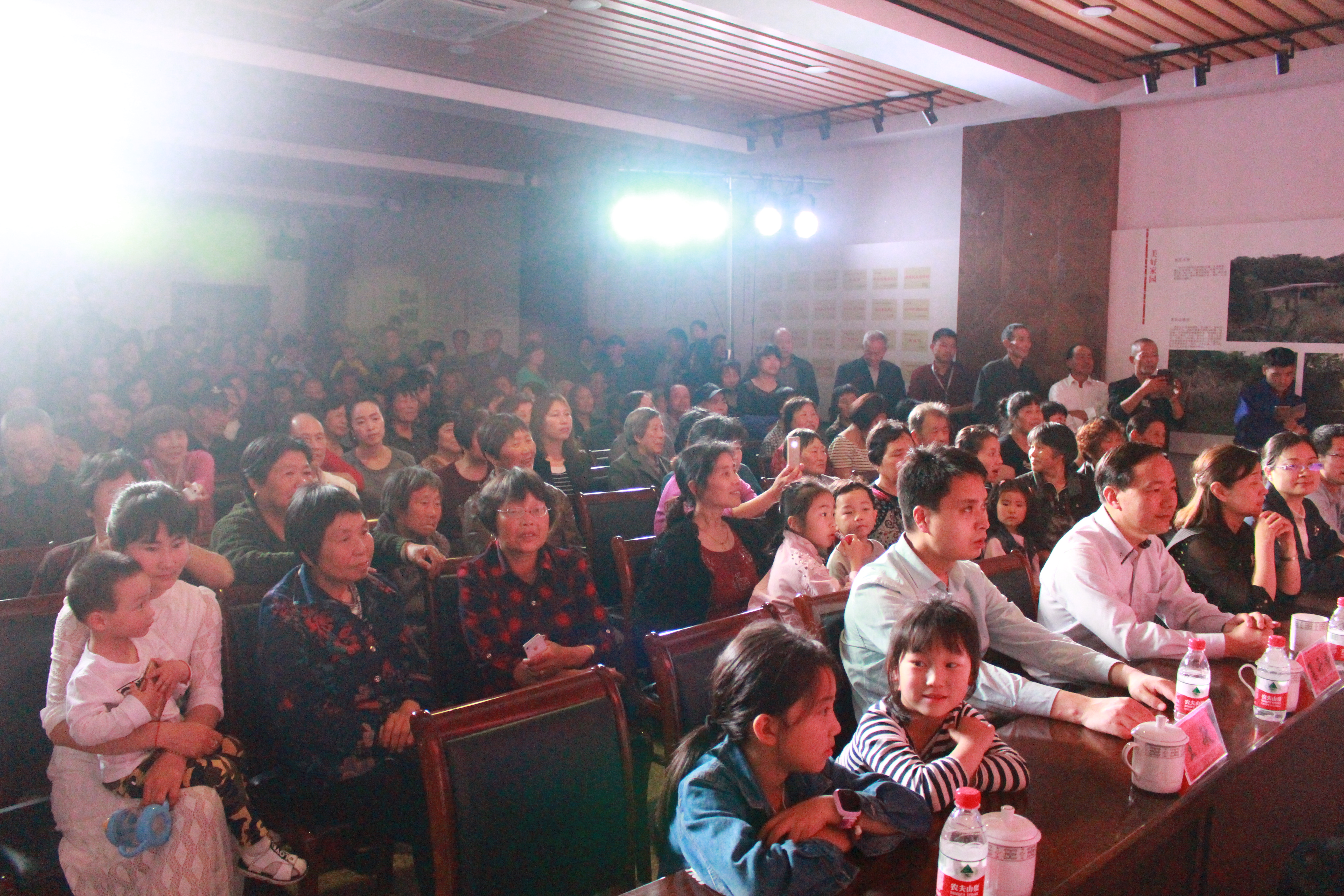 为使演出节目更接地气,当天下午,师生们在北汤村剿灭劣V类水现场实地采风,体验感受。当晚剿灭劣V类水专题文艺巡演在村文化礼堂进行,戏剧系15表演艺术班和14越剧班的同学们为当地群众作了精彩表演。当地村民挤满了整个礼堂。戏曲、声乐、舞蹈、小品等精彩节目博得村民们阵阵掌声。尤其是音乐诗朗诵《五水共治•美哉长兴》等几个剿劣主题节目,观众拍手叫好热烈。