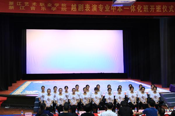 2018年浙江省教育厅启动中职与应用型本科一体化人才培养试点,中职3年,本科4年,实行一体化培养,这是浙江省职业教育改革的一项重大突破。首批试点有15所中职学校入选,对应8所本科高校,浙艺是其中之一,与浙江音乐学院联手培养戏曲表演专业(越剧方向)人才。2018级越剧中本一体化班因此成为浙江省第一个艺术表演类中本一体化班级;戏曲表演(越剧方向)专业成为浙艺历史上首个中专本科一体化培养专业;21位姑娘成为我校中本科一体化培养试点招收的第一批新生。在两校领导的共同重视下,越剧中本一体化班人才培养方案由浙音、浙艺共同制订,从招生、教师安排到教学组织等,两校都付出了很多心血。其中中职阶段教学任务由浙江艺术学校(浙艺附中)负责完成,本科阶段教学任务由浙江音乐学院负责完成。