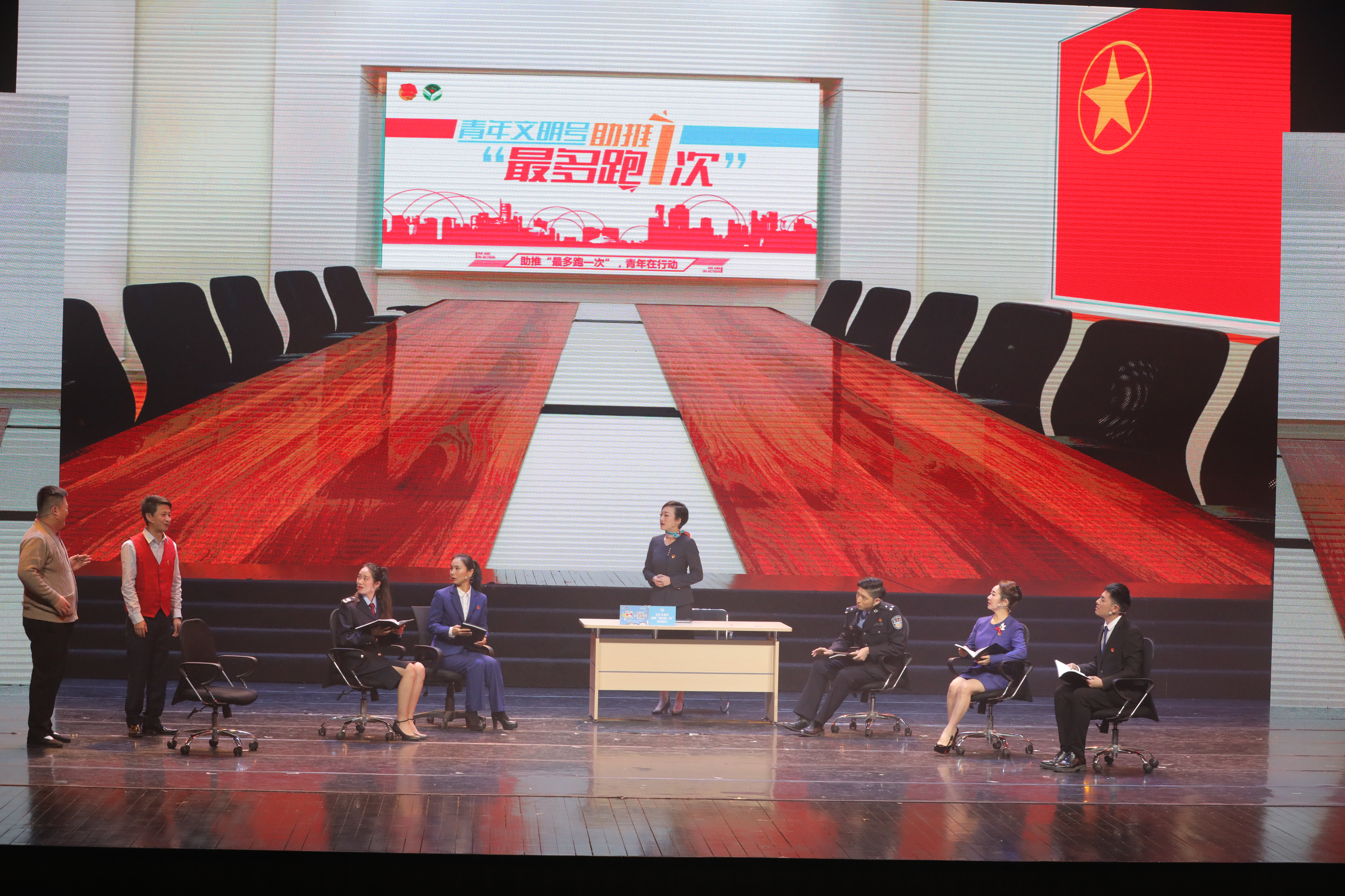 活动宣布全省青年文明号助力“最多跑一次”改革微电影展播活动的获奖名单,优秀青年典型在舞台上代表全省团员青年喊出响亮口号:“八八战略再深化  改革开发再出发  最多跑一次 青春勇担当。”王玉娣演唱的《春天的故事》和陈艳华演唱的《我爱你,中国》歌颂改革开放40年来浙江取得的历史成就,为在新时代奋斗在改革一线的青年们加油鼓劲。由浙江曲艺杂技总团的情景剧《最多跑一次》将老百姓现实生活中的“跑一次”搬上了舞台,表演生动鲜活,紧扣实际。活动现场播放了金塘税务分局拍摄的微电影《一张退税单》,这部微电影以小见大,情节扣人心弦,深刻反映了“最多跑一次”改革给浙江人民带来的满满获得感。省曲协和浙江音乐学院的说唱《青春助跑》展示了在“最多跑一次”改革过程中,查找痛点、疏通堵点、破解难点,切实为群众带来获得感的过程。浙江艺术职业学院的诗歌朗诵《幸福是奋斗出来的》表现了衢州市行政服务中心管理办公室青年们深刻理解“放管服”改革精神,紧扣全省顶层设计,以强烈的责任感和机遇意识,创新推出以“一窗受理、集成服务”为主要内容的“最多跑一次”改革试点的事迹。浙艺女声独唱《中国进入新时代》释放出青春的光彩和力量。一个个节目传递出浙江青年在新时代同奋斗、共筑梦的精神,鼓励着青年们继续开创新辉煌。