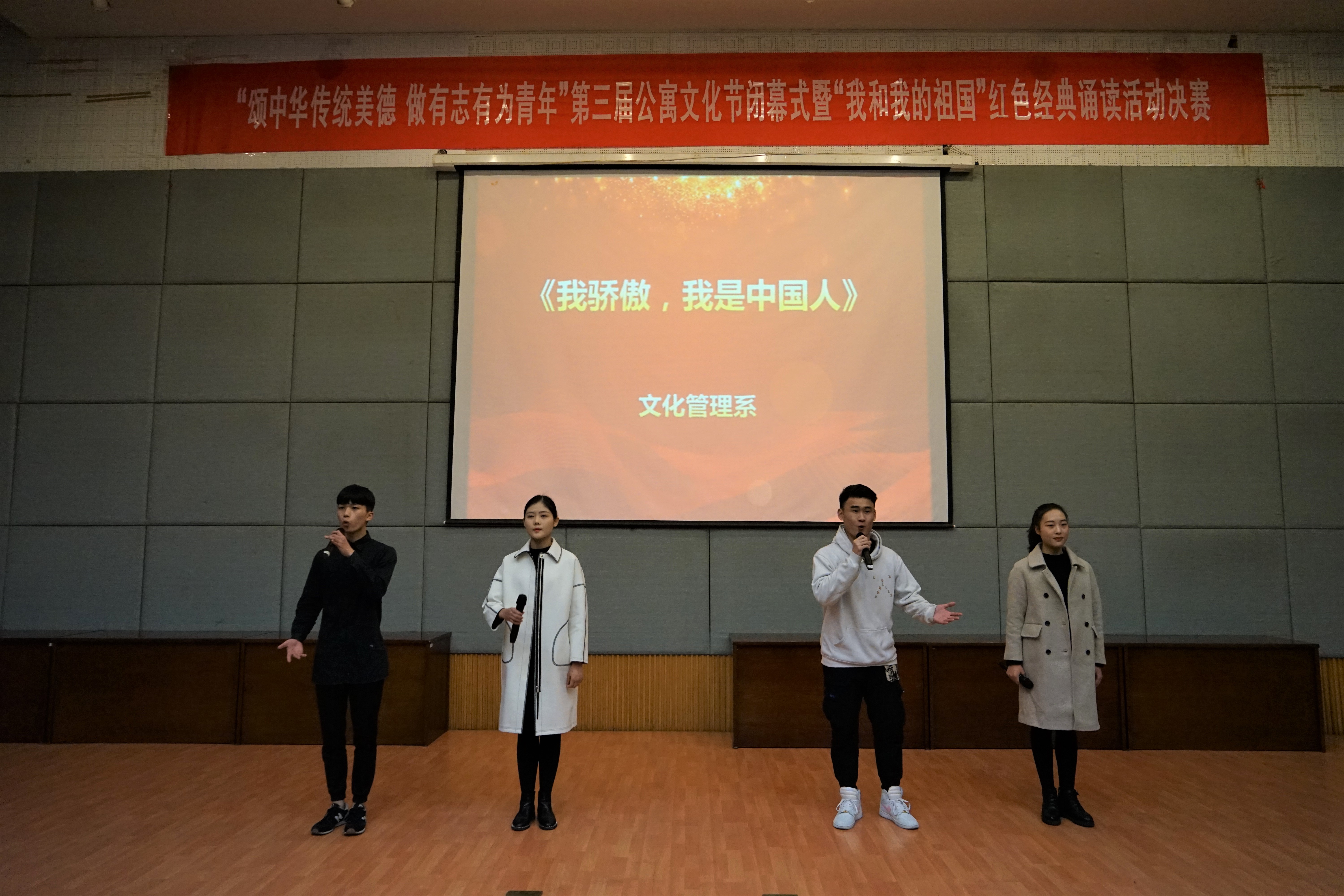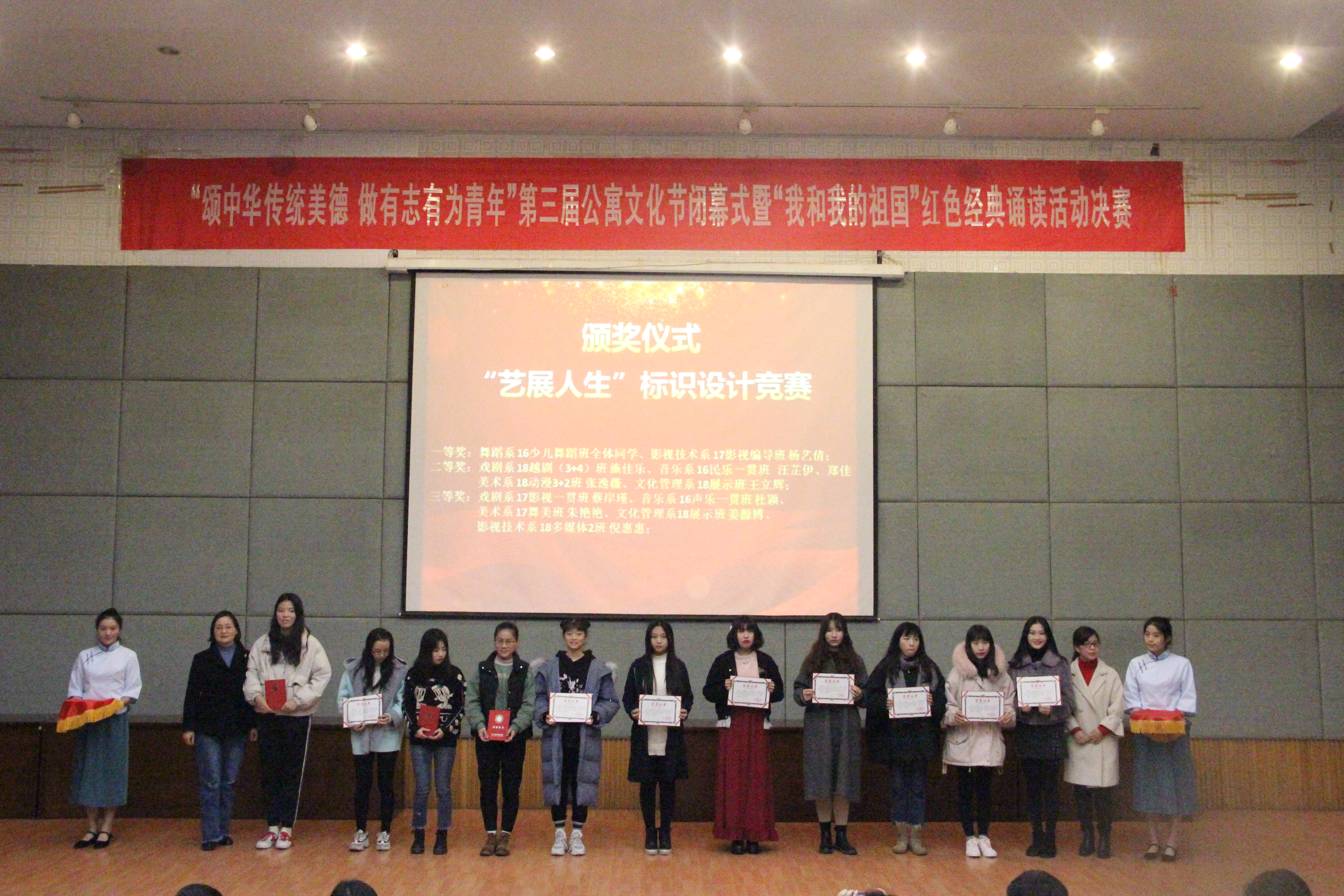 12月18日晚,浙江艺术职业学院“颂中华传统美德 做有志有为青年”第三届公寓文化节闭幕式暨“我和我的祖国”红色经典诵读活动决赛在图信中心报告厅举行。校党委书记朱海闵、党委副书记夏开堂、党委委员、宣传部部长马向东,部分职能部门负责人,各教学单位党总支负责人及部分教师出席活动。