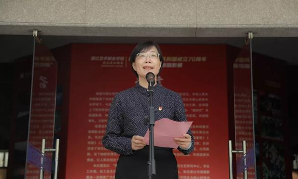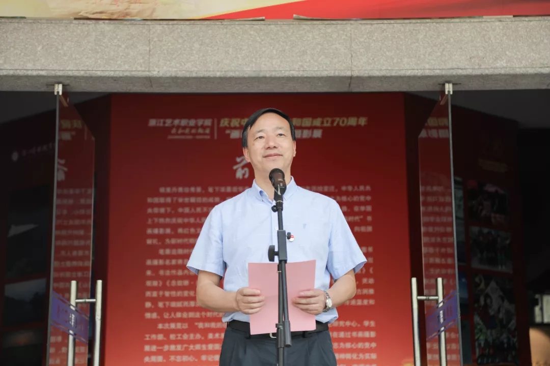 为庆祝中华人民共和国成立70周年,浙江艺术职业学院举办以“我和我的祖国”为主题的“画时代”书画摄影展,今天上午在美术系展厅举行开幕式。