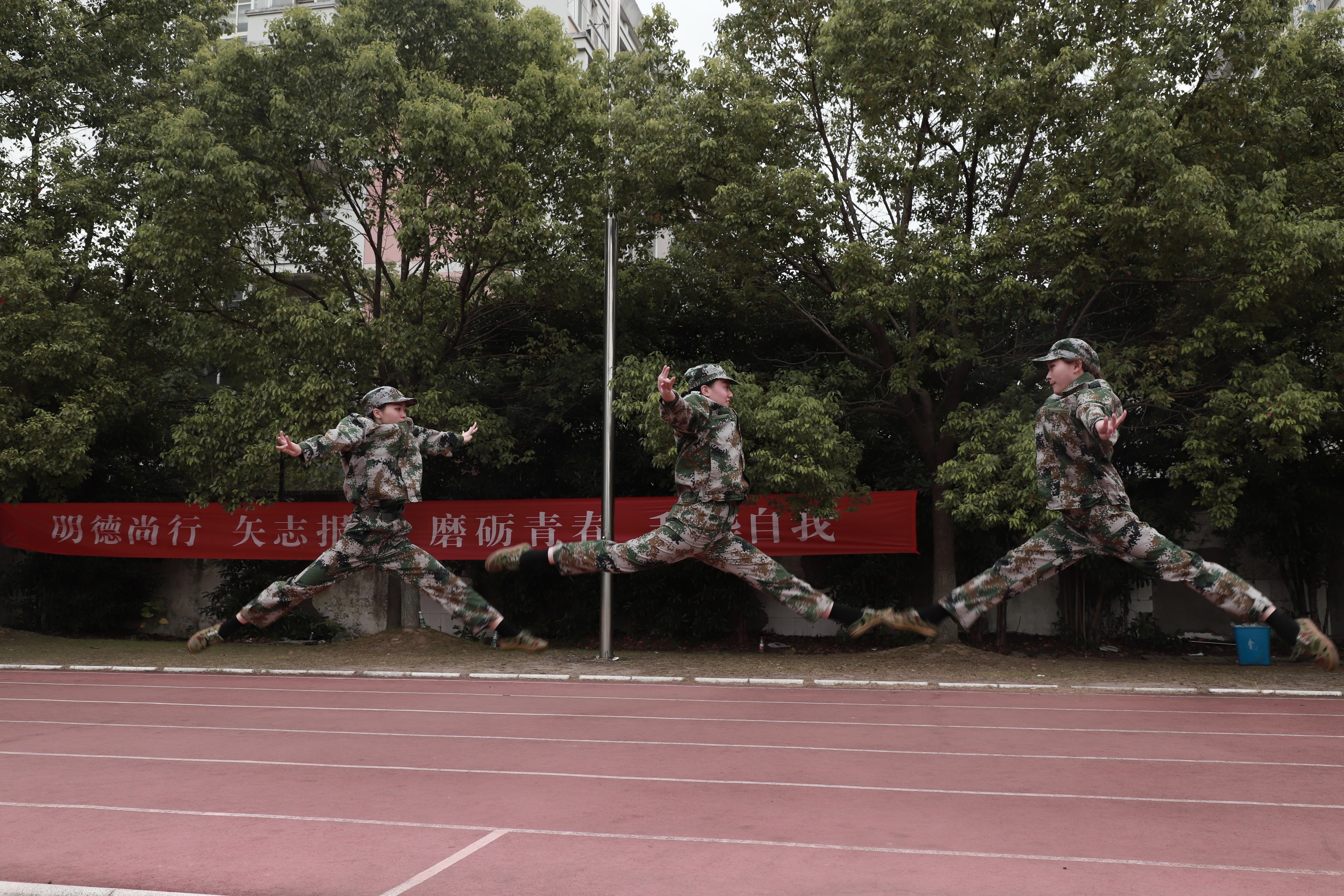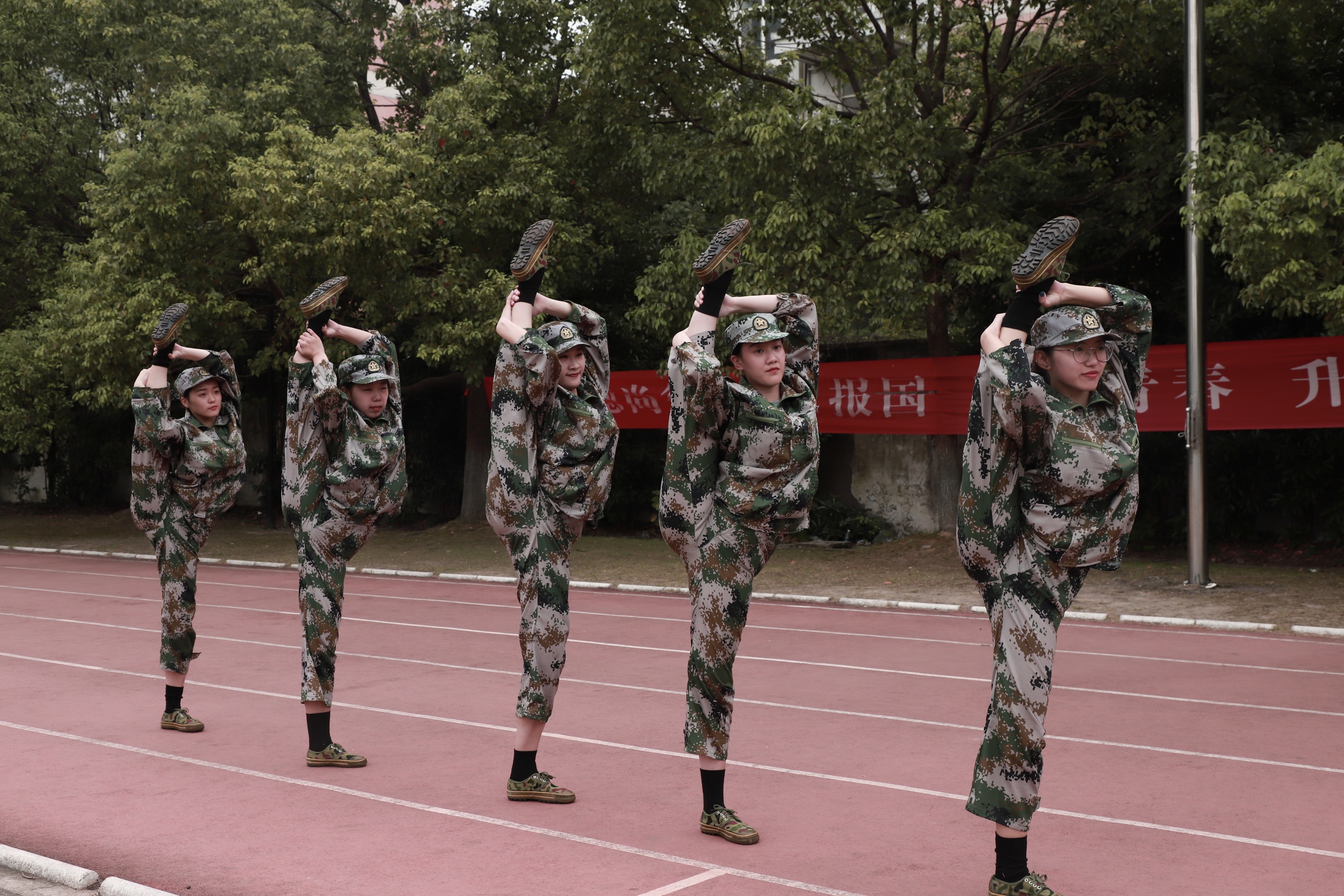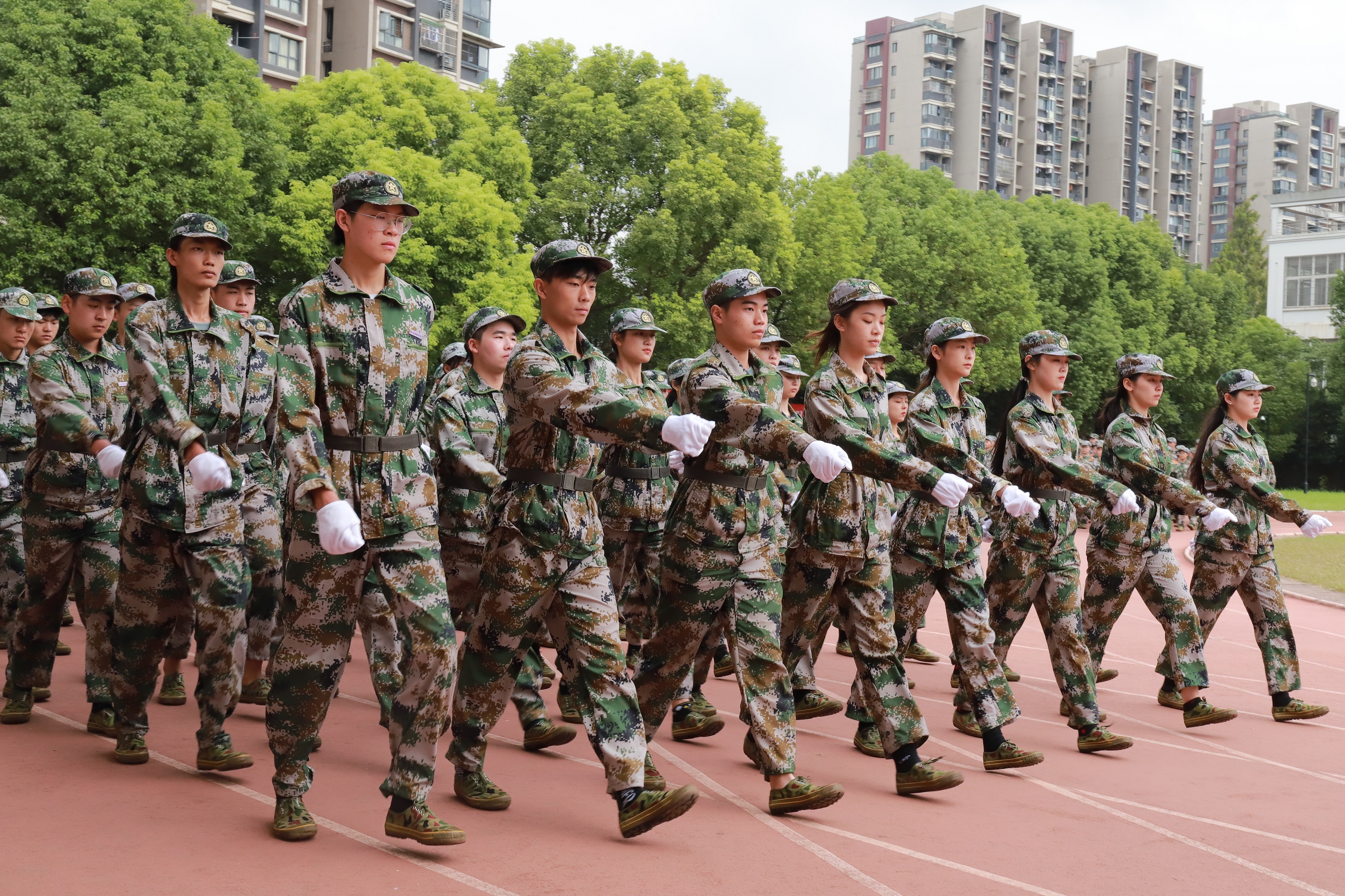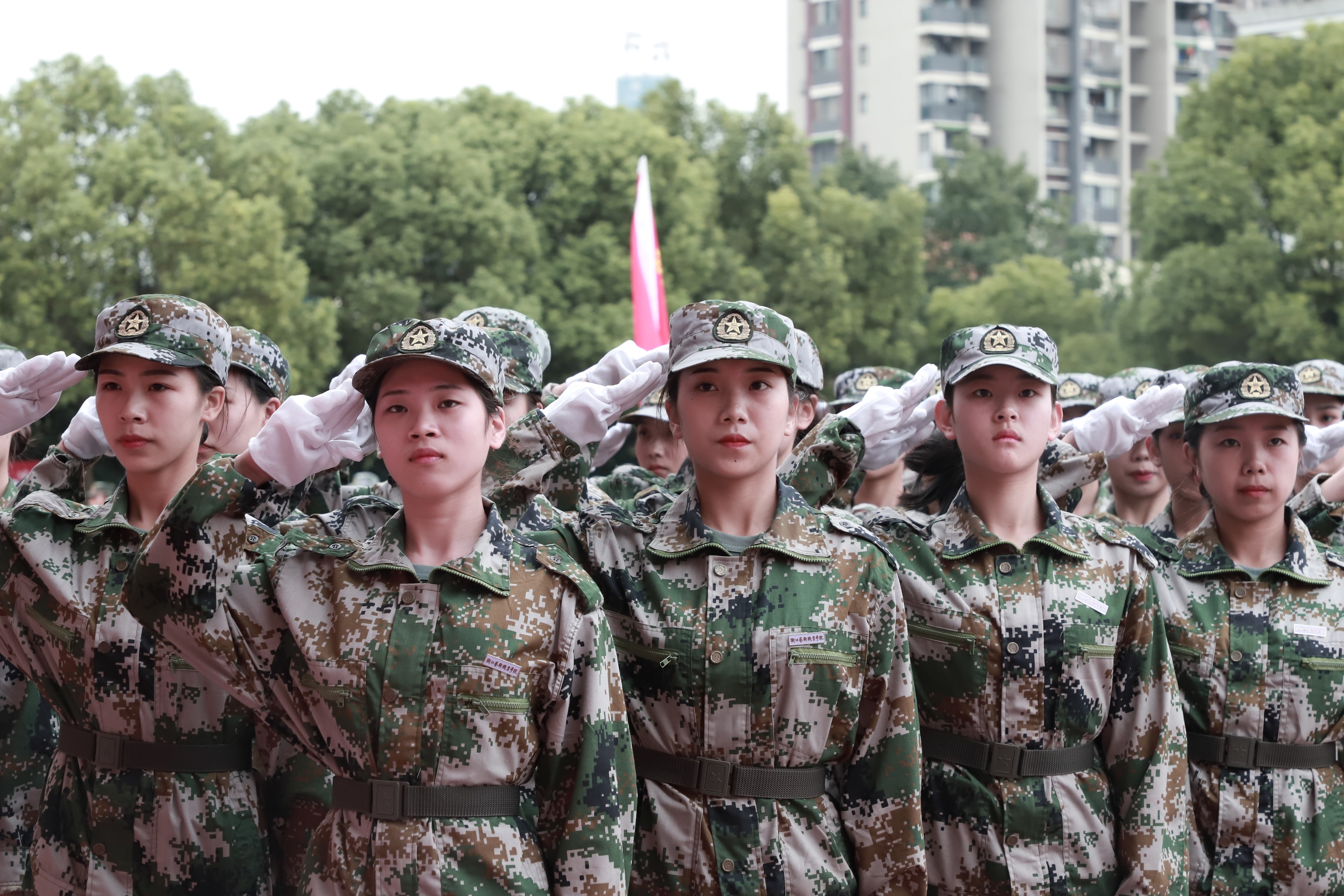 各营连新生进行会操表演,经过13天刻苦训练,他们步伐整齐,精神抖擞,目光炯炯有神,展现了浙艺学子的青春风采和精神风貌。