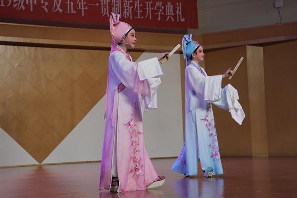 现场,小百花班陈子心、陈可心表演越剧《十八相送》,生动的表演十分可爱。