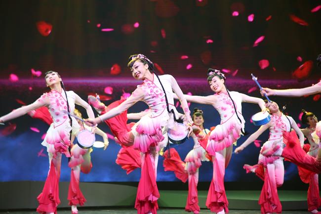 《莲鼓越歌行》(片段)。“采莲”是江南水乡独具特色的生产劳动。每到仲夏时节,三五成群的江南女子,吟曲轻歌、楫舟泛水、采莲嬉戏,好一幅动人的江南采莲图。