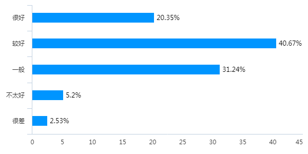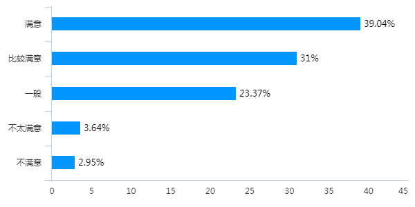 大部分学生比较认可前三周线上学习情况,回答“满意”“比较满意”占比分别为39.04%、31%,总体满意度居高。