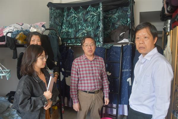 夏开堂走访立志园2号楼,他走进戏剧系、音乐系新生寝室,查看卫生情况,与新生聊天,给予新生生活、学习上的指导。