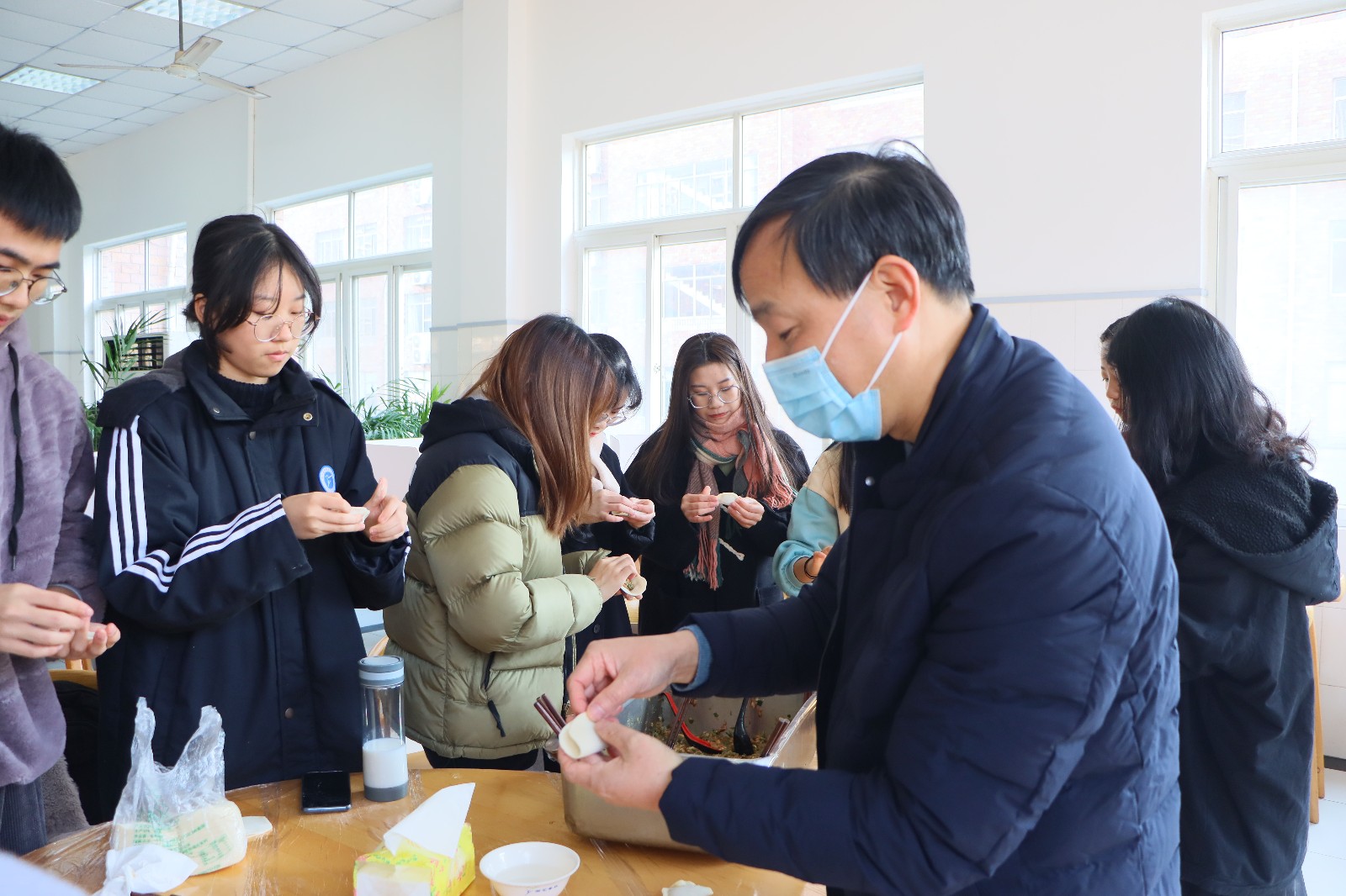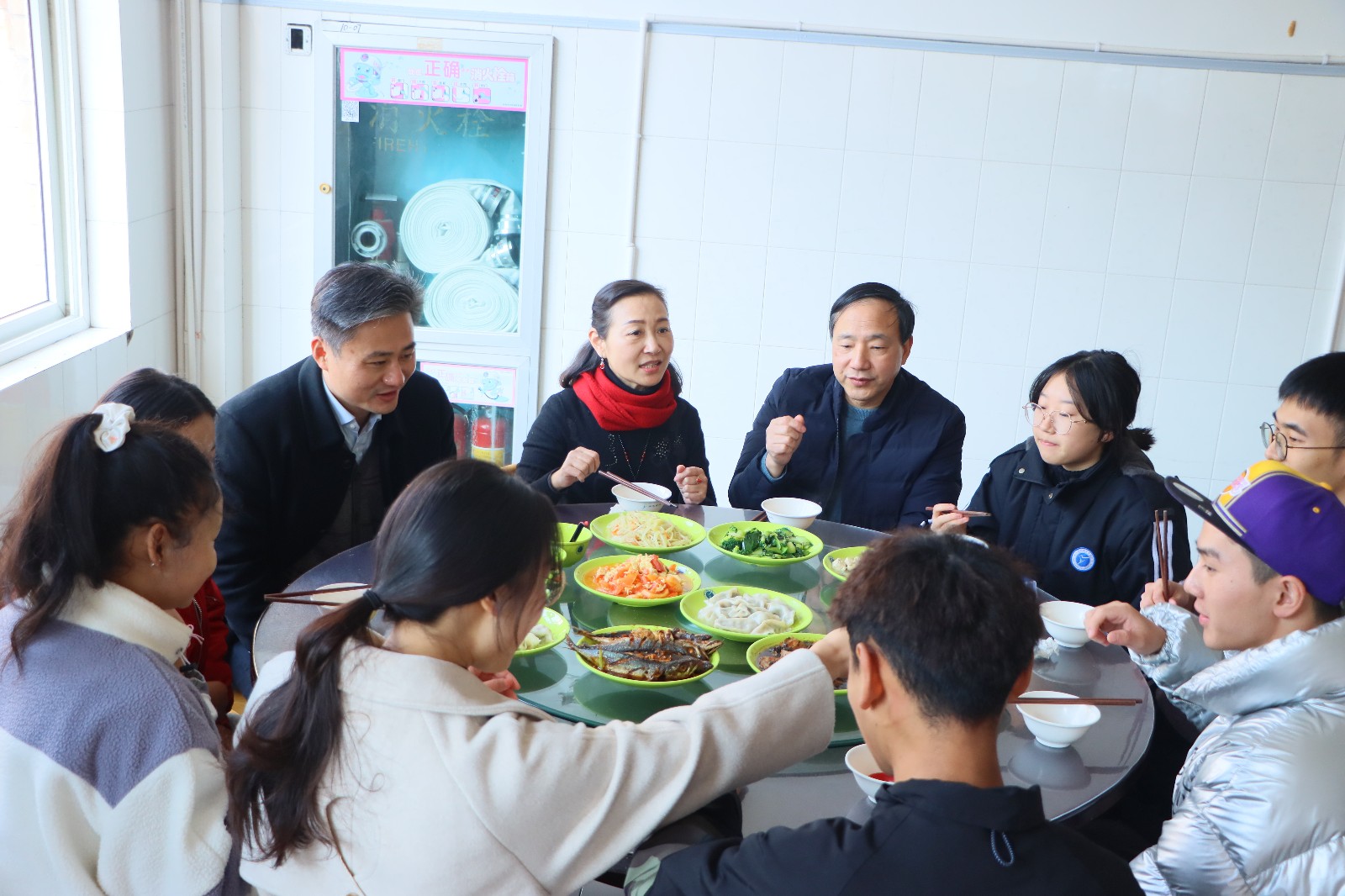 12月21日,“情‘饺’融 暖冬至 话青春”—— 我校第一期“书记校长有约”活动在食堂举行。校党委书记薛亮、校长黄杭娟、党委副书记夏开堂与来自不同院系的10个民族的20余名同学相聚食堂,一同包饺子、讲思想、话学习、聊生活、叙团圆。
