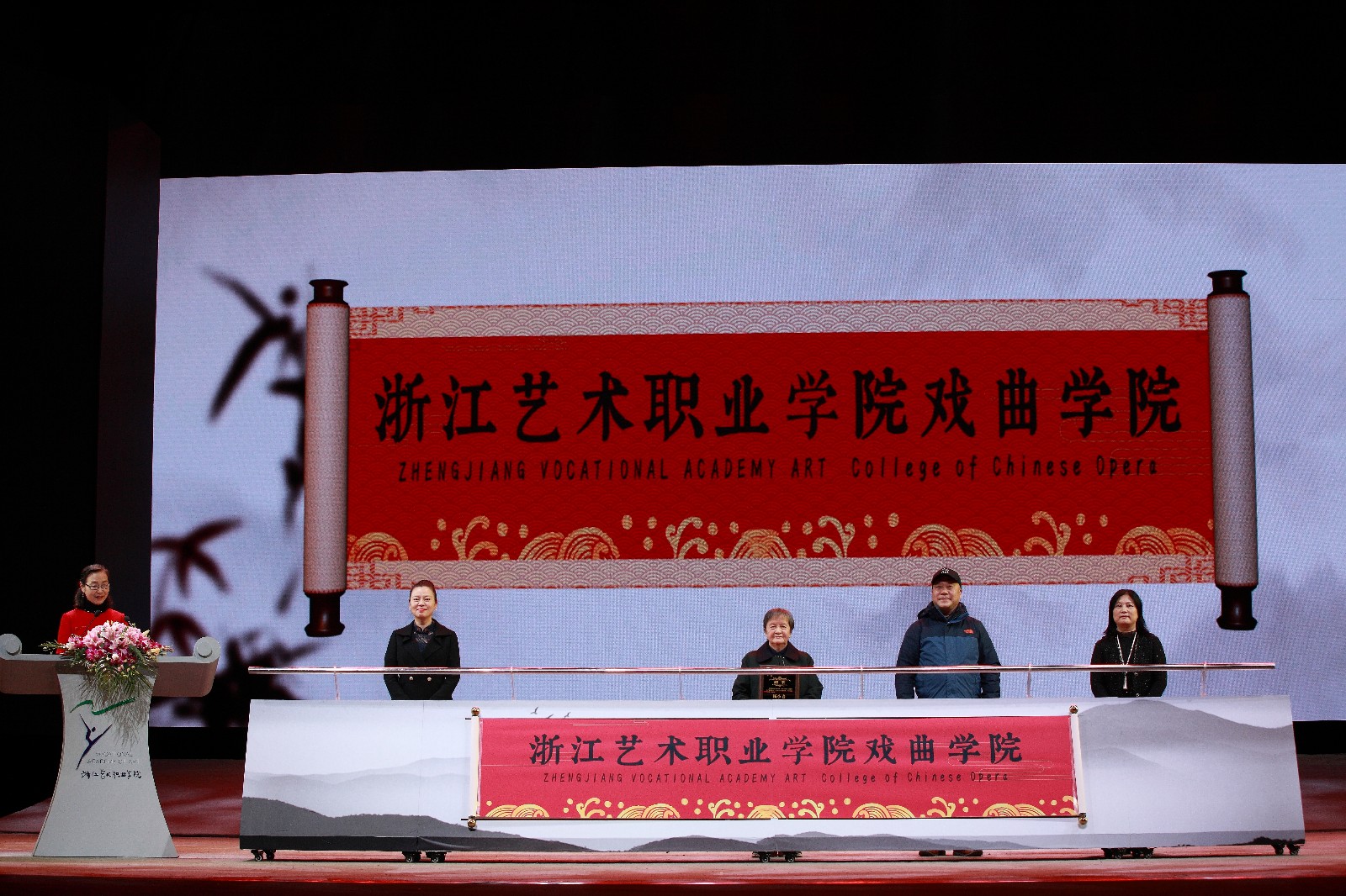 12月18日晚,浙江艺术职业学院戏曲学院成立仪式暨《诗路行吟》诗画浙江戏曲雅集——2020年度浙江戏曲产教联盟展演在余杭大剧院举行。越剧研究院、长三角戏曲产教联盟的各位领导、嘉宾和浙艺戏曲学院师生共同见证了戏曲学院成立仪式。