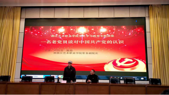 3月11日上午,由社会科学部、离退休党总支联合举办的浙江艺术职业学院党史学习教育专题讲座首讲——“学党史明初心”党史教育专题讲座在图信报告厅举行。学校原常务副院长卢竹音教授为党员师生带来一场题为《一名老党员对中国共产党的认识》精彩讲座。