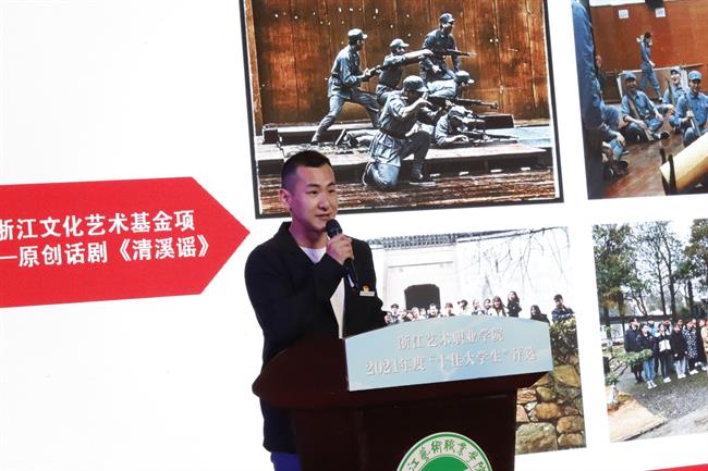 薛亮做总结。他表示,在场师生深深为候选人们身上敢于梦想、勇于突破、脚踏实地、勤勉践行的奋斗精神所感动,希望全体浙艺青年都要以“十佳大学生”为榜样,用奋斗为青春画出最美的色彩。夏开堂宣布评选结果并与全体评委嘉宾为同学们颁发奖杯。