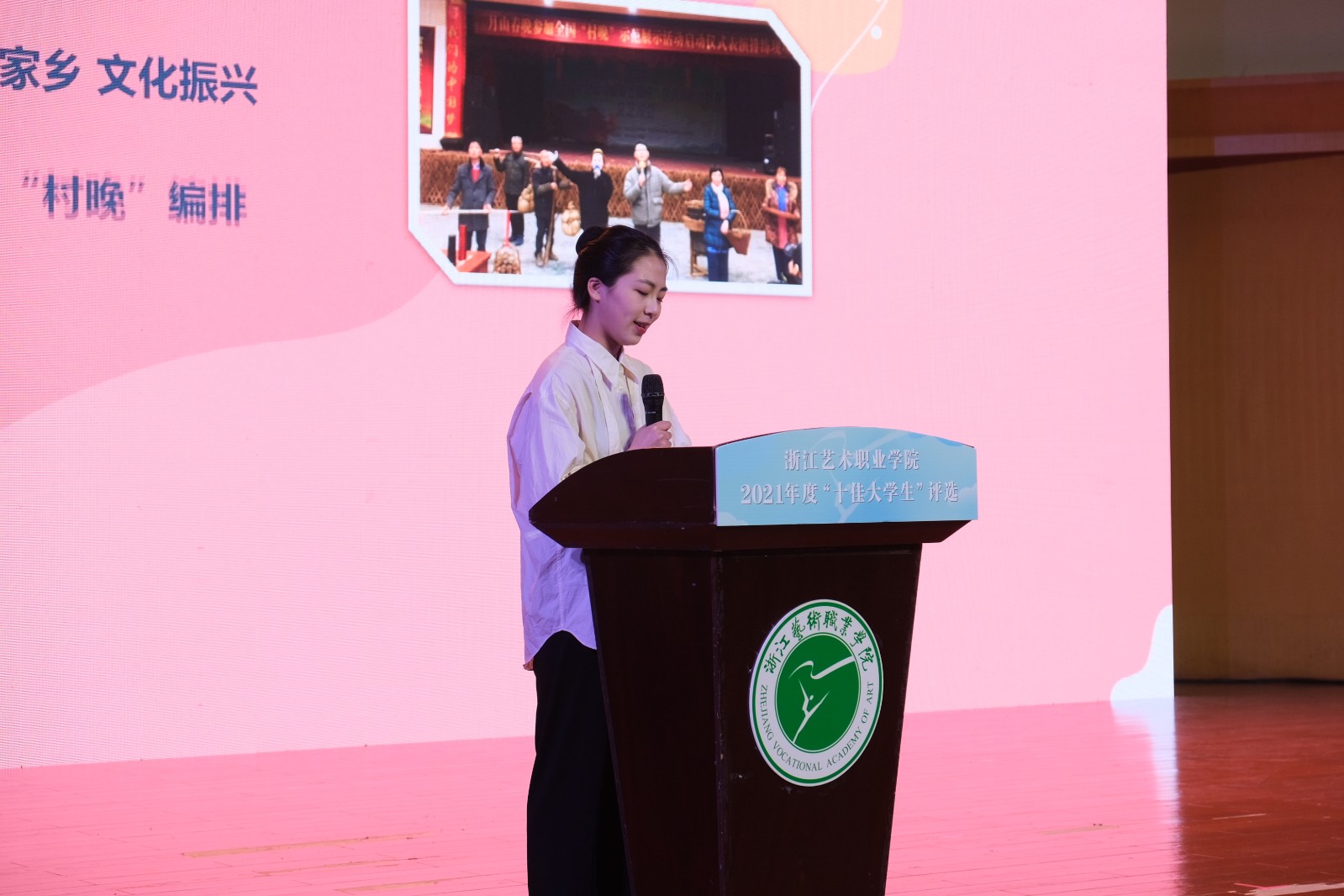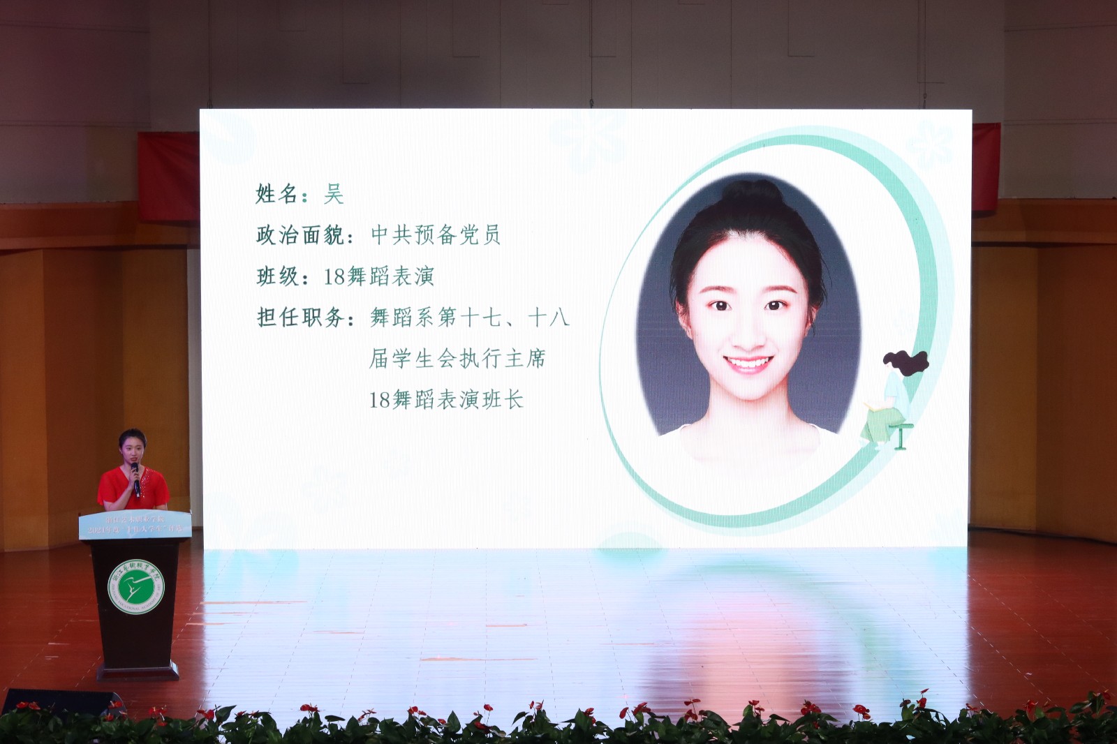 浙江艺术职业学院2021年“十佳大学生”评选活动现场展示于4月19日晚在音乐厅举行。校党委书记薛亮,党委副书记夏开堂,副院长沈军甫、支涛,党委委员、宣传部部长马向东出席,浙江省教育厅教育发展中心副主任章正春和浙江音乐学院、杭州医学院、浙江旅游职业学院、浙江机电职业技术学院、浙江商业职业技术学院等校党委学工部主要负责同志应邀出席并担任评委。