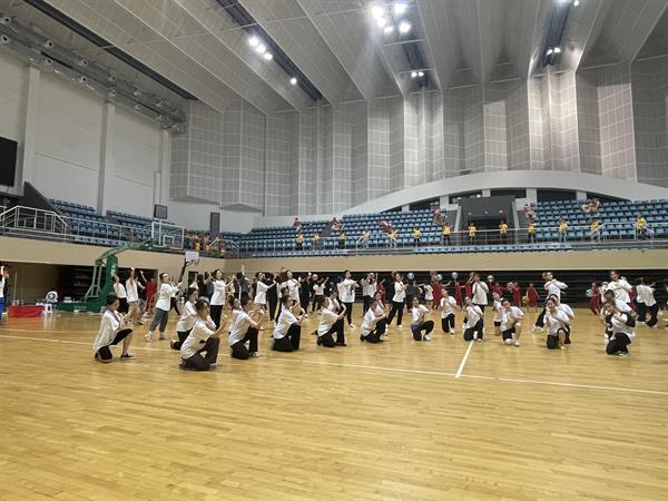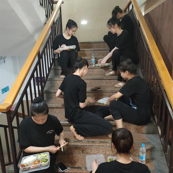 5月15日,舞蹈系主任张星与本次晚会总导演施国庆老师进行沟通协调,及时解决了体育馆空调问题,保证了排练顺利进行。数日来,舞蹈系的教务老师、任课老师和几个班的班主任积极配合,协商调整上课时间。教学实践部焦峤等老师多次联络工作到深夜;浙艺车队的王磊等司机师傅起早贪黑争分夺秒的运送师生队伍;舞蹈系学生们团队意识强和组织纪律性强的特点在本次排练中得以表现,他们排练认真卖力,每天自觉统一排练服装,步调一致,保证了排练的高效率、高质量,有时还会反过来关照到老师们的辛苦,暗暗地为老师准备茶水。