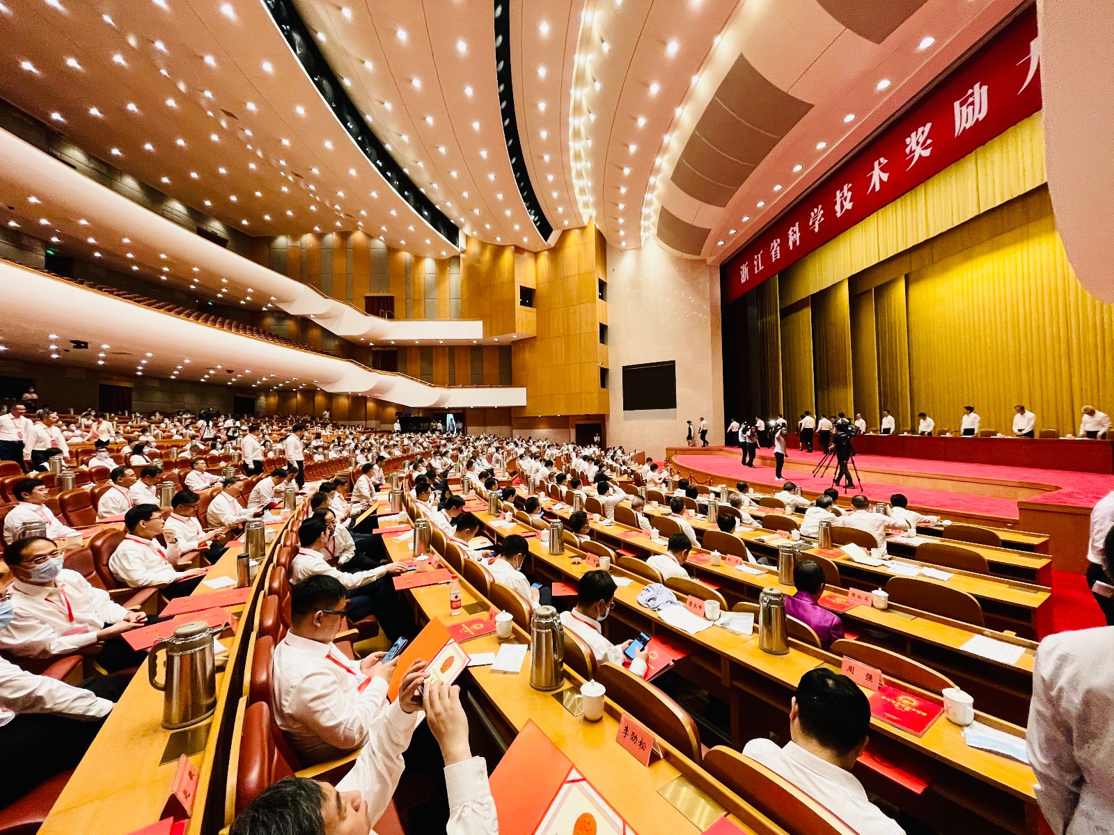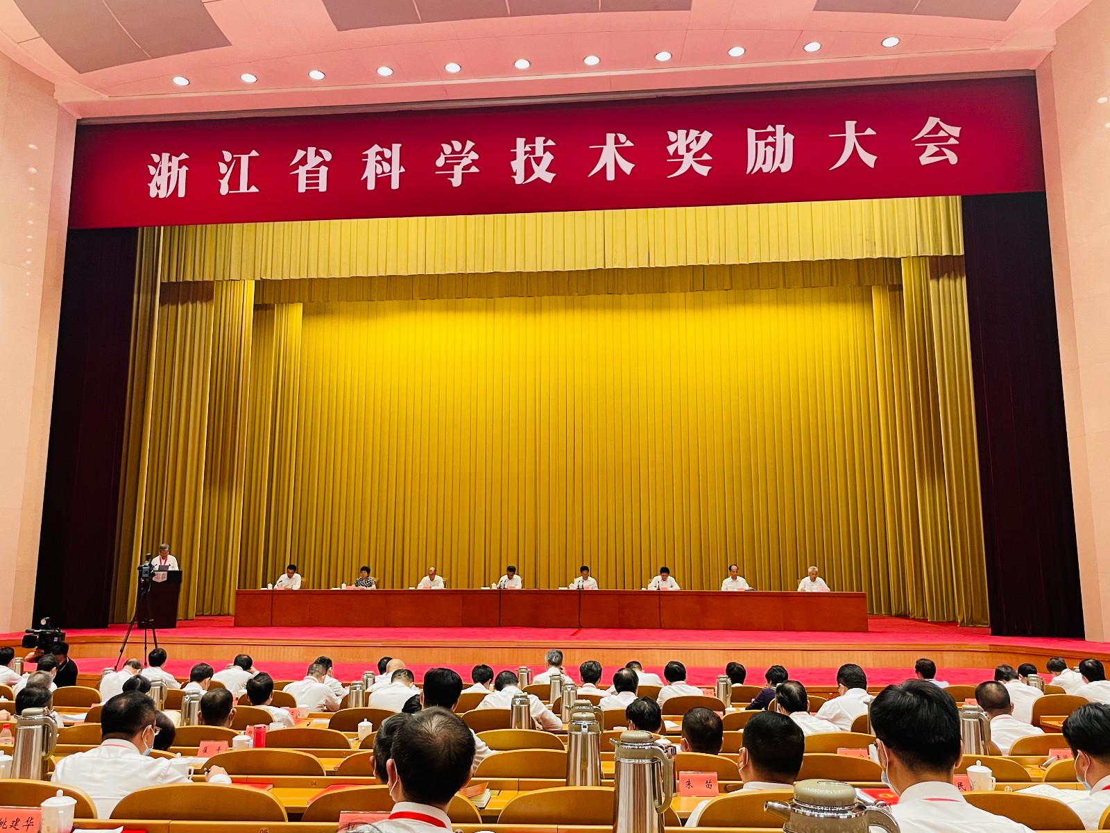 615日下午,浙江省科学技术奖励大会在省人民大会堂举行。省委书记、省人大常委会主任袁家军,省委副书记、省长郑栅洁出席大会。在热烈的掌声中,袁家军向2020年度浙江科技大奖获得者、中国工程院院士潘云鹤颁奖。与会省领导还为2020年度省科学技术奖一等奖第一完成人、科技创新鼎获奖单位、第六批省特级专家代表、西湖友谊奖获奖专家代表等颁奖授牌。