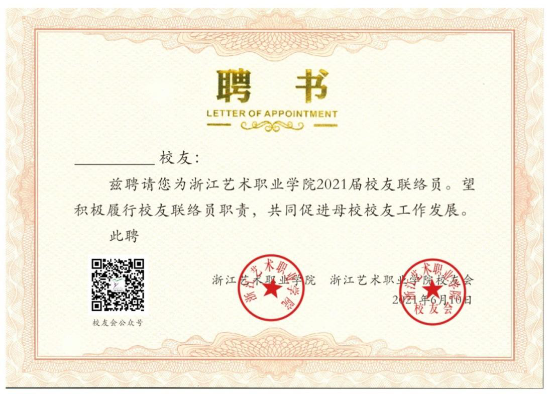 校友联络员聘书