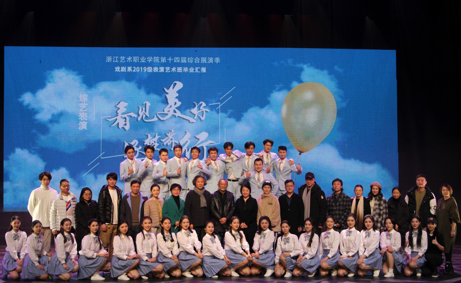 12月21、22日晚,戏剧系2019级表演艺术班毕业汇报在浙江实验艺术剧场上演,同学们用一场充满正能量的综艺表演——“看见美好,逐梦前行”,弘扬爱国主义、革命英雄主义,传承努力拼搏的演艺精神,展现了浙艺青年青春阳光、积极向上的形象。