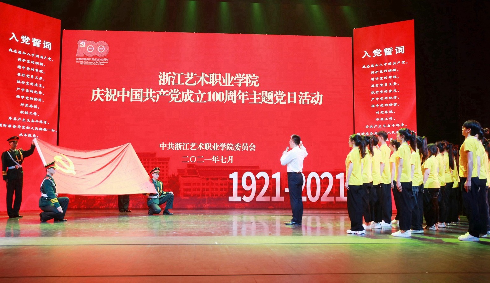 “七个一百”为重点,举办“艺心向党”专场演出、主题党日等庆祝中国共产党成立100周年系列活动。百余位学生参加文化和旅游部《伟大征程》、省委省政府举办的《百年红船 扬帆远航》等重大主题庆祝活动。以“主题展览+电影展映”方式,打造红色经典打卡地,面向文旅系统、教育系统免费开放预约,吸引省政协副主席等领导前来参观,共接待30多家单位2018人次。