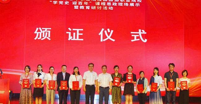 与浙江旅游职业学院共同承办全国文化艺术职业院校和旅游职业院校“学党史  迎百年”课程思政现场展示活动,3个项目入选优秀案例,2个项目入选线上思政教育典型案例。申报国家课程思政示范课建设项目3个、浙江省级课程思政示范课建设项目10个、浙江省级课程思政教学研究项目6个。