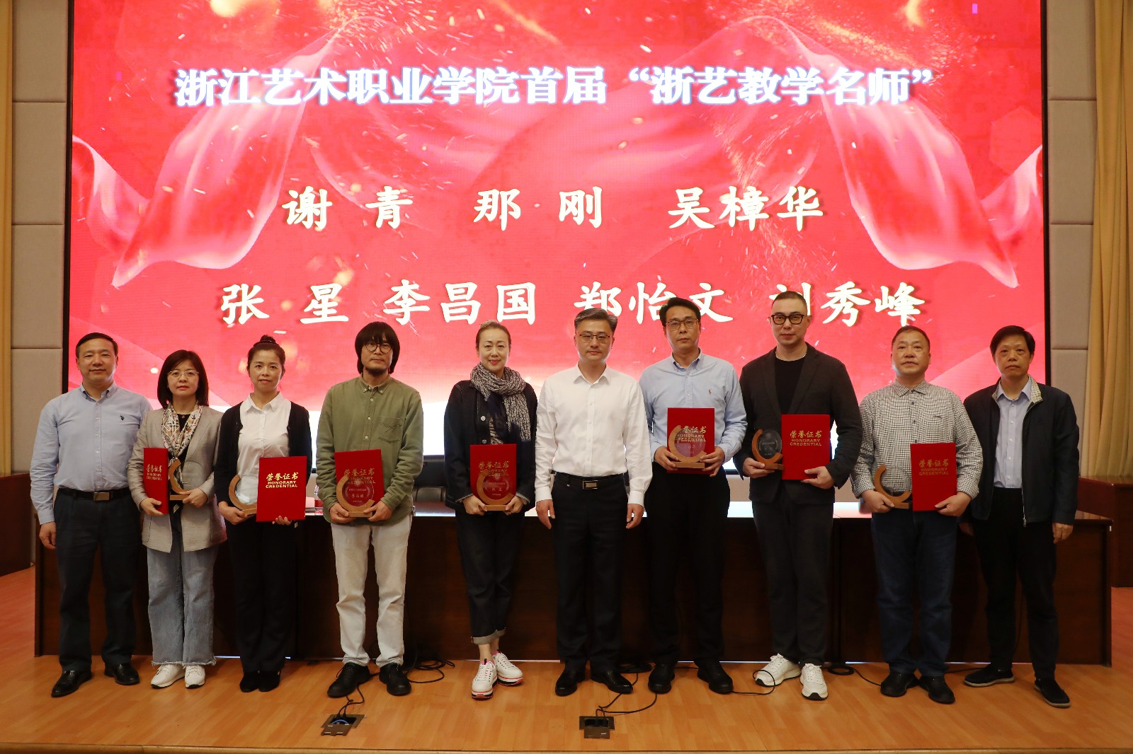 会议对浙江艺术职业学院首届“浙艺教学名师”获得者进行了表彰,他们是谢青、那刚、吴樟华、张星、李昌国、郑怡文、刘秀峰。张星、郑怡文作为“浙艺教学名师”代表作了交流发言。音乐学院、设计学院、基础教学部(公共体育部)作为二级教学单位代表,就推进师德师风建设工作作经验交流。