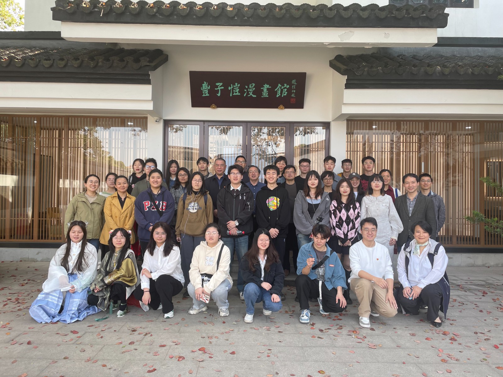 下午,师生们来到了桐乡市石门镇丰子恺纪念馆继续参观。丰子恺纪念馆先后被评为浙江省廉政文化教育基地、浙江省爱国主义教育基地、国家三级博物馆等称号。纪念馆由丰子恺故居“缘缘堂”、丰子恺漫画馆和中国·桐乡廉政漫画馆三部分组成。馆内收藏了历届中国·桐乡廉政漫画大展的700多件作品,是全国廉政漫画的创作、展览、交流、研讨和收藏的重要平台。丰子恺在绘画、文学、音乐等多方面成就斐然,是中国现代漫画的先驱,其艺术才能和人格魅力至今依旧闪烁,“廉漫”之风吹遍了菊乡大地。