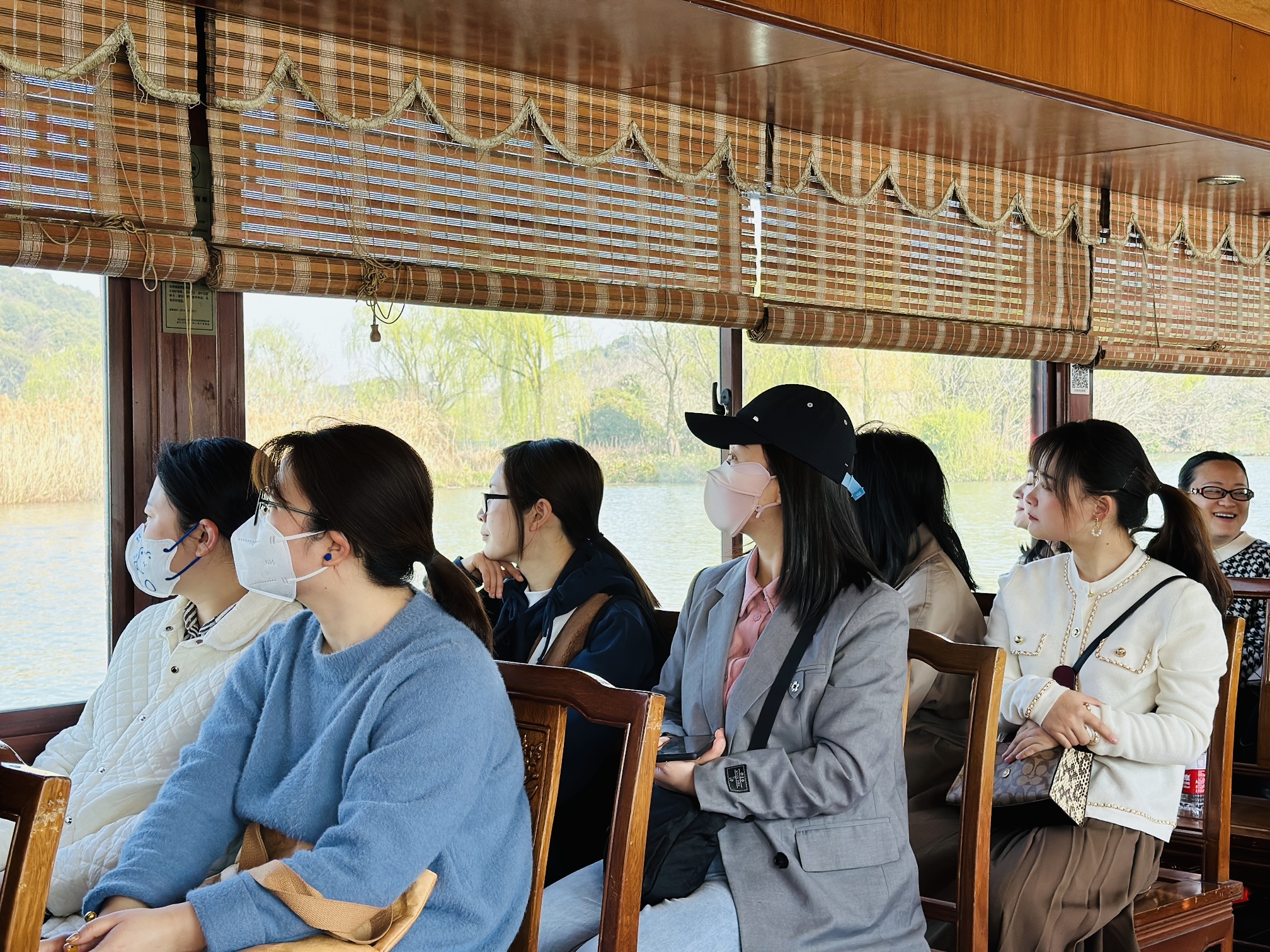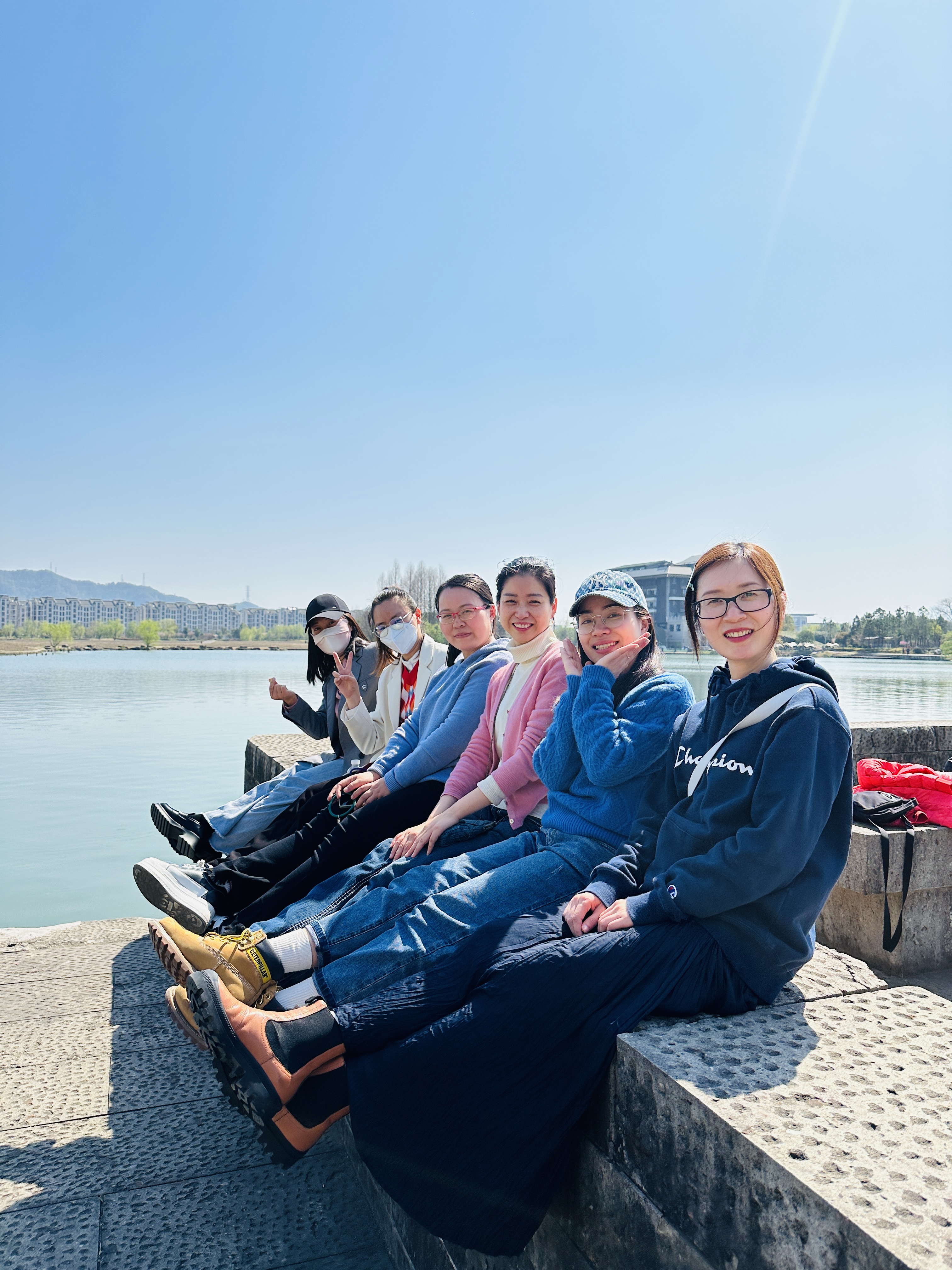在接连两日降温后,这一天阳光和煦。湖边新发的垂杨婀娜,树下卸下冬季厚重衣裳的女老师,一身轻松走进春天。她们泛舟湘湖,漫步堤岸,晒太阳的晒太阳,赏花的赏花,交流交流工作进展,吐槽吐槽个人烦恼,抛开精神桎梏,放飞一天快乐。