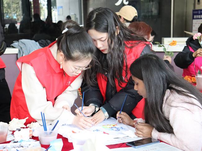 亚运情、巧手意,恰逢女神节,在喜迎亚运的浓厚氛围里,近日,“文艺星火赋美”工程志愿者、浙江艺术职业学院手工艺学院“艺小匠”们携手东信社区,举行“凝聚她力量·风采亦飞扬”庆祝“三八”国际妇女节暨为亚运添彩主题活动,与外国友人共绘亚运,共舞未来,让女性同胞们感受美、欣赏美、体验美,为杭州亚运会贡献“她力量”。