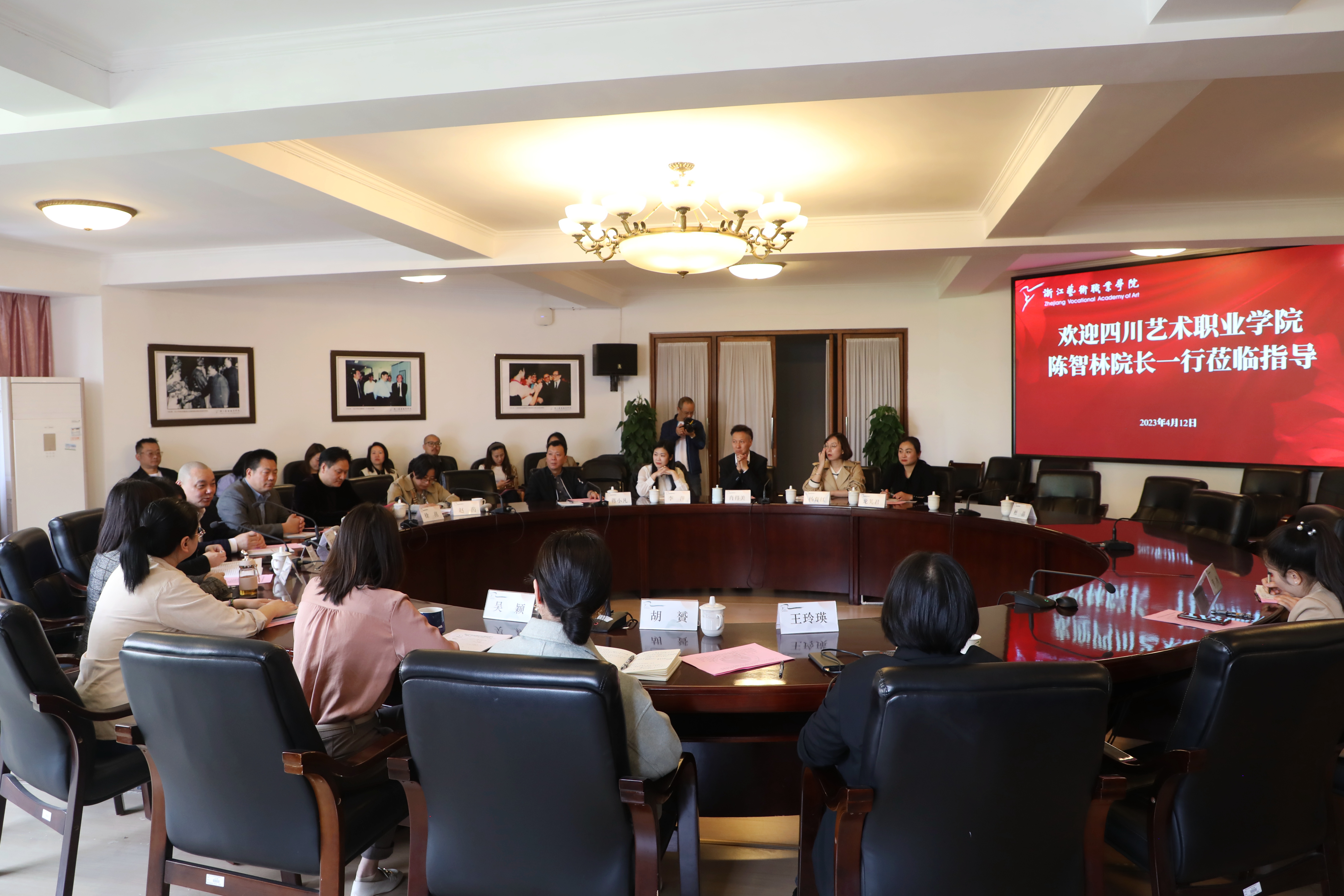 4月12日,四川艺术职业学院院长陈智林一行来浙江艺术职业学院调研。校党委委员、副院长支涛,相关职能部门负责人陪同。