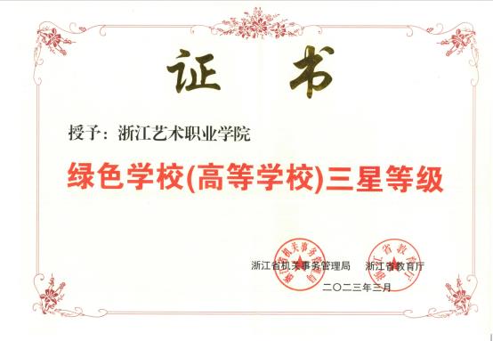浙江省绿色学校(高等学校)创建评价分为三星(优秀)、二星(良好)、一星(合格)三个等级,此次获评“浙江省绿色学校(高等学校)三星等级”称号,是对我校绿色学校创建工作的充分肯定。学校将在新的起点上继续努力,开拓进取,以“3060碳中和”为使命,持续深入探索学校绿色发展的新路径,打造绿色生态美丽校园,助力学校下一步低碳学校、零碳学校的创建工作。
