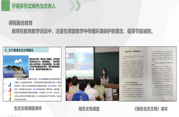 党的二十大报告指出:“推动绿色发展,促进人与自然和谐共生”。近年来,学校党委高度重视,深入学习贯彻党的二十大精神和习近平生态文明思想,认真落实省教育厅“绿色学校(高等学校)”创建行动相关文件精神,深入践行绿色发展理念,建立生态文明教育工作,积极开展绿色发展工作。开展生态文明教育,培育绿色学校文化,优化校园空间布局,建设能源管理体系,打造绿色环保校园。将绿色学校创建工作要求紧紧围绕创建标准层层落实、层层细化,全面发动师生员工,形成全校创建、人人参与的良好局面。持续 “贯彻生态理念,创建绿色学校”,持以“科技、人文、绿色、和谐、可持续发展”为建设理念,积极整合各方资源,以绿色健康校园文化为引领,形成密切协作、共同参与、合力推进。