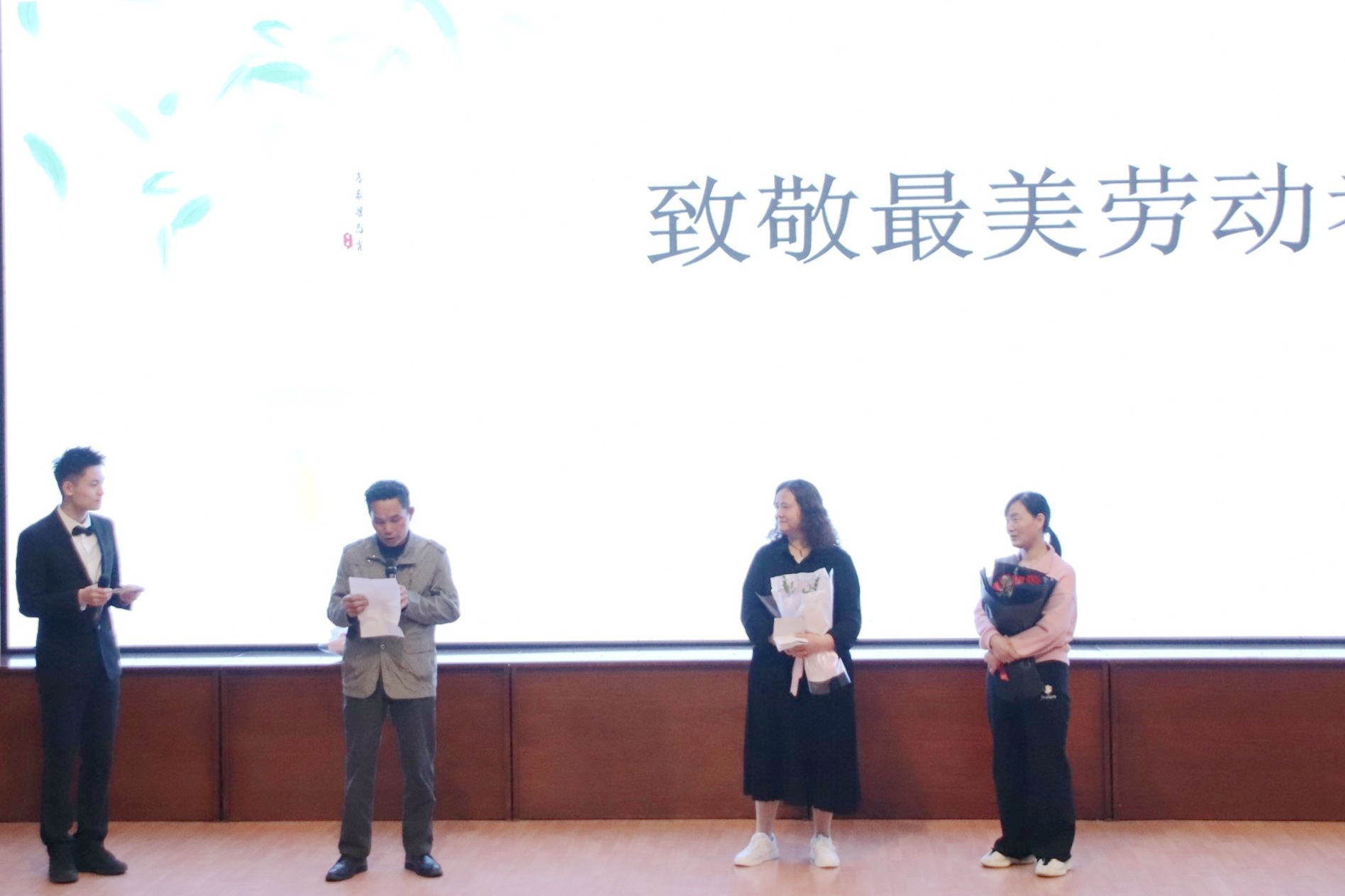 学生代表向默默值守在公寓的管理员们献上鲜花表达敬意,他们是最美劳动者。同学们安静祥和的宿舍生活离不开他们24小时的守护,他们或许不善言辞但总是温暖人心。已经在公寓工作20余年的立志园2号楼管理员杨阿姨、立志园4号楼管理员田阿姨、11号楼管理员凌师傅在回忆起与学生相处的点点滴滴,满是感动。他们来回奔波的脚步从未停歇,他们的勤劳奉献散发着光芒,管理员们用关爱助力浙艺学子成长成才。