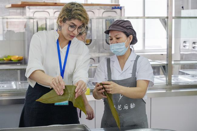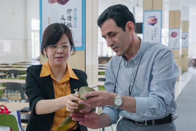 薛亮为伊朗青年学者颁发了《非遗与生活》课程结业证书,并与大家一道包粽子度过中国传统节日。
