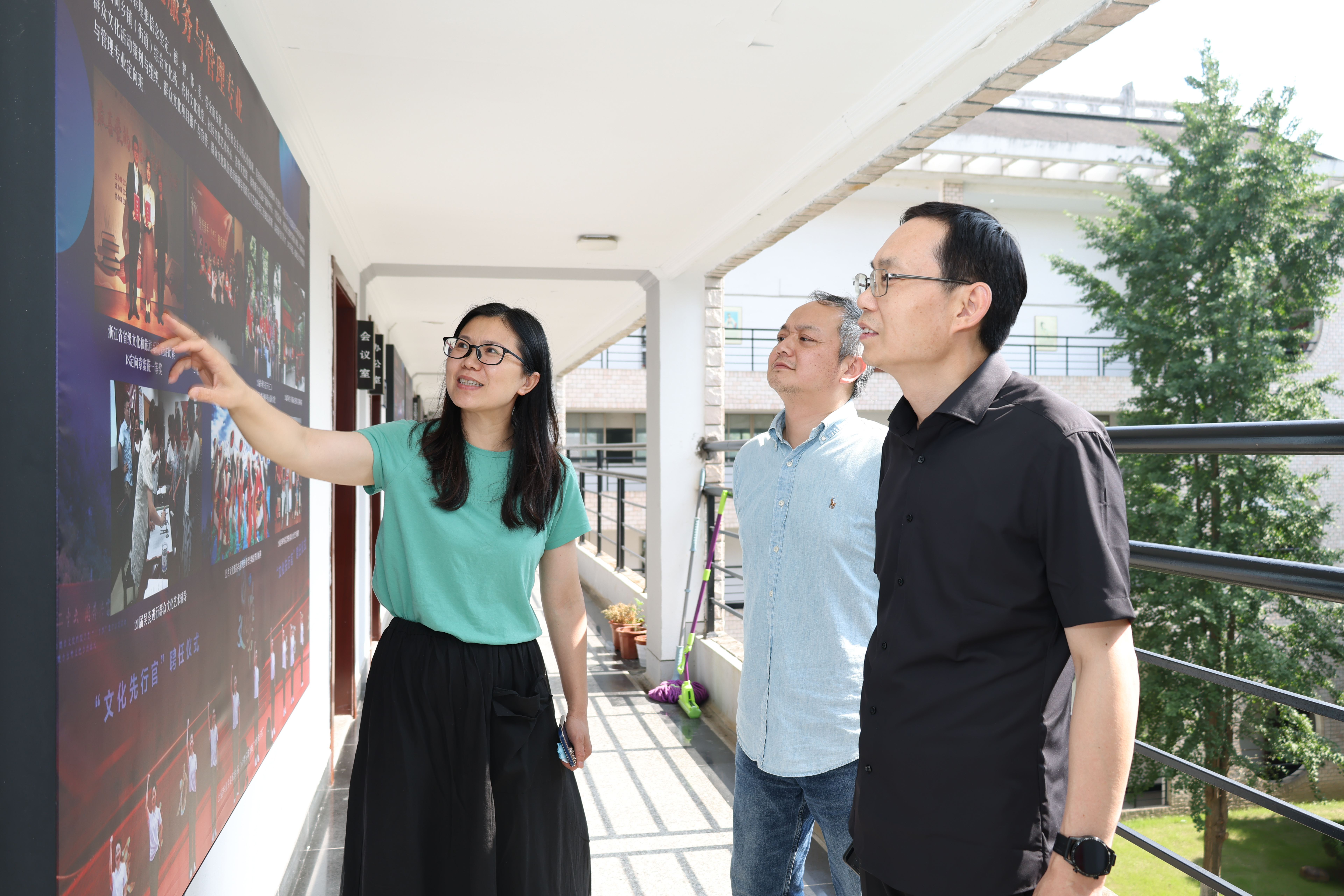 施俊天走访了职能部门、教辅部门、二级学院、基础教学部、马克思主义学院、浙江实验艺术剧场、东冠校区及立志园、立业园学生宿舍。他实地察看了各单位的教学设施、办公场地,并与教职工和同学们深入交流,倾听大家的心声,以及对学校建设发展的建议。